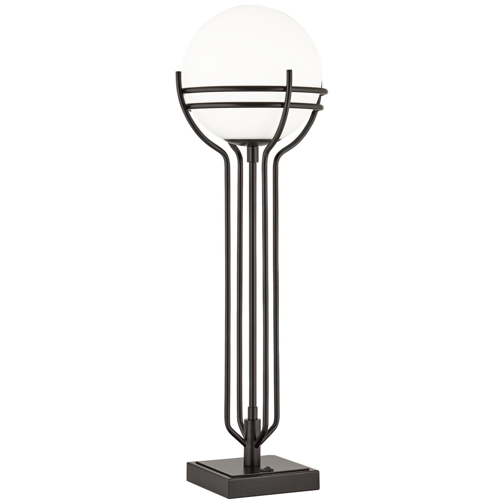 Almost resembling a candelabra, this table lamp easily stands apart with its many, spire-like rods and globe shade. Anchored down by a cool, black base, this item earns its boldness with a black metal finish and bowl-like top for maximum light cast. ideal in modern decor arrangements or any room that needs an intriguing re imagining.