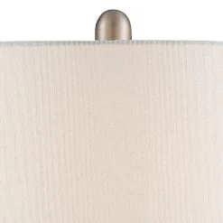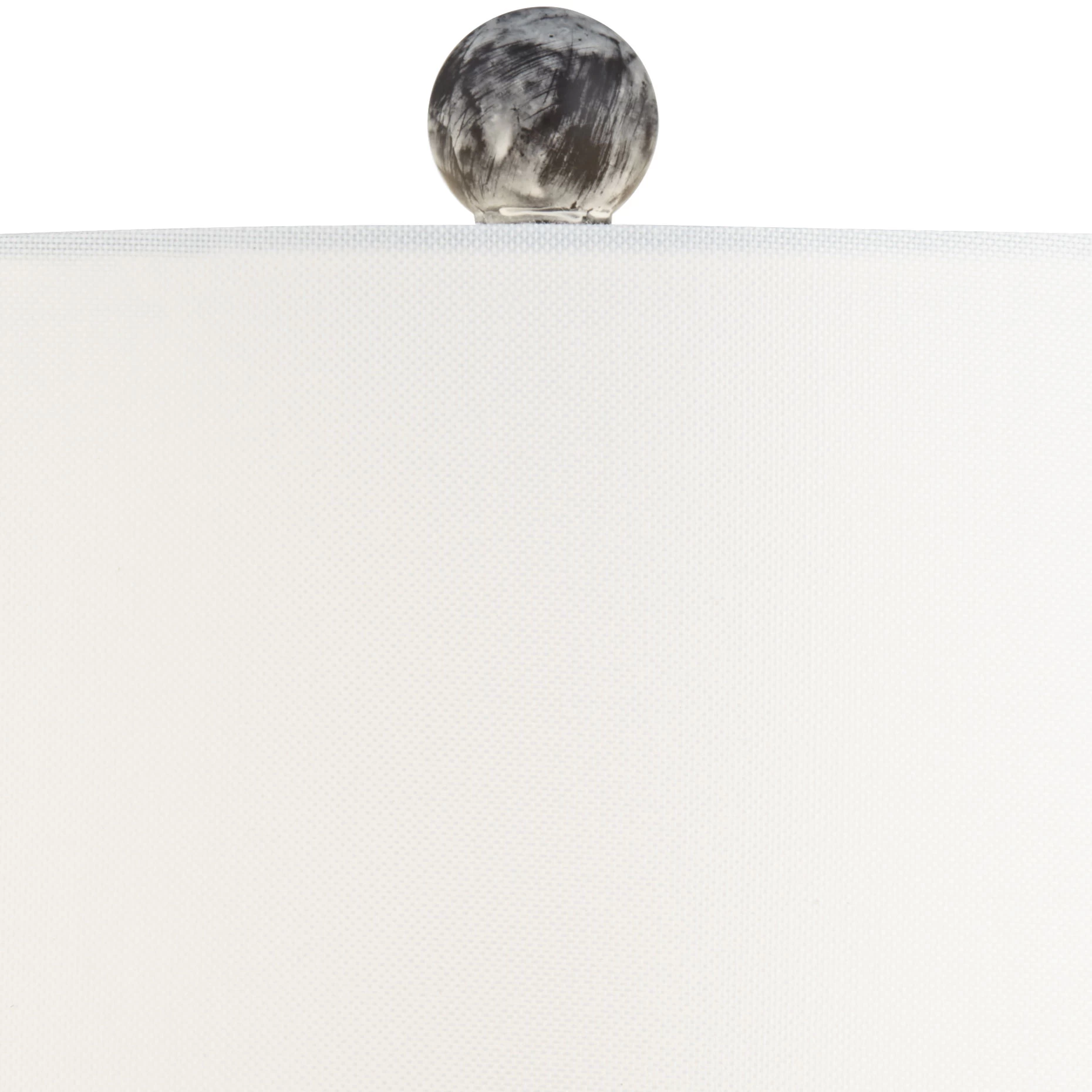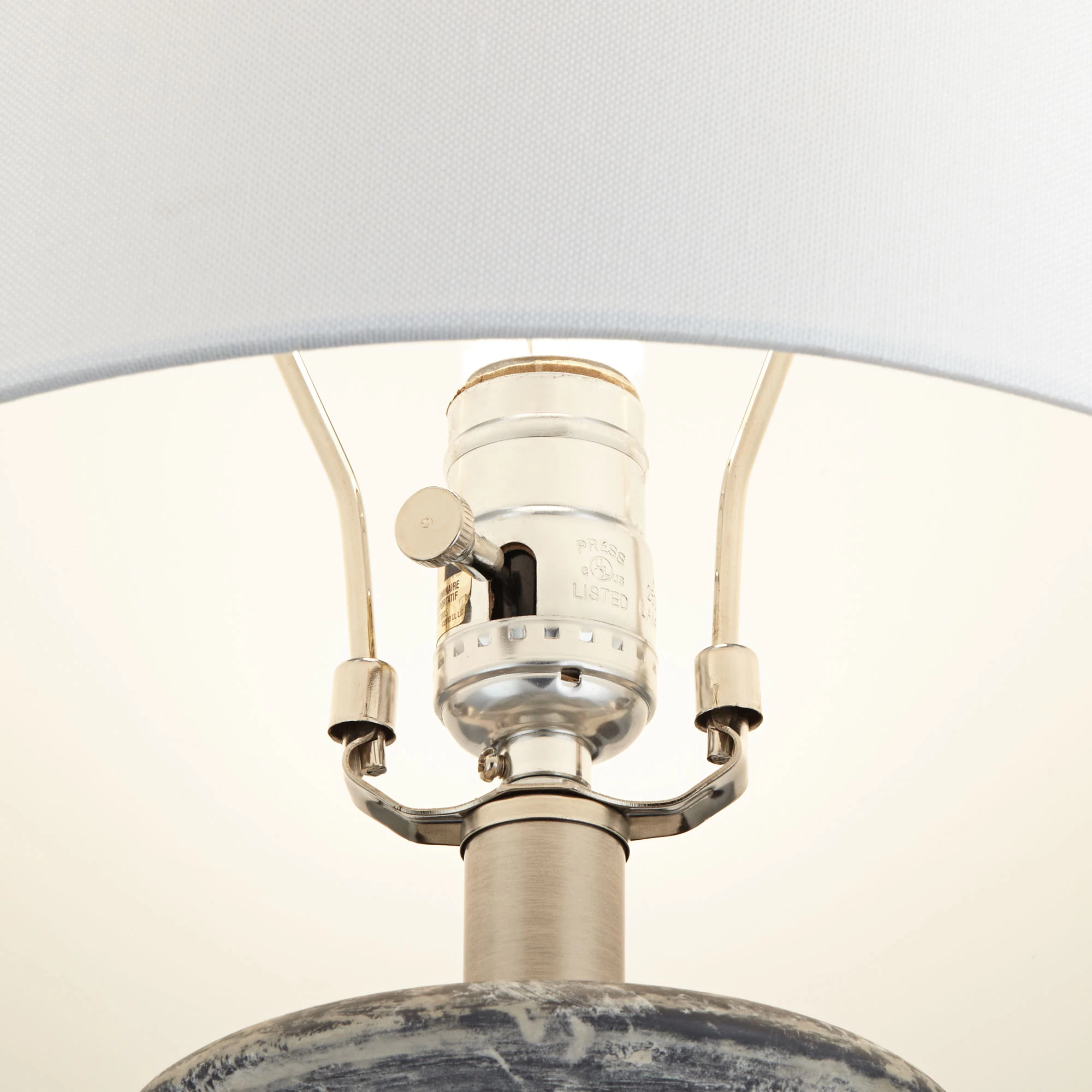 Bring an earthy look to your space with the Anza Table Lamp, featuring a jug shaped ceramic base in gray Smooth Stone finish. A ball finial in matching finish and a tapered white linen shade top the base for a neutral complement. An on/off switch is installed on the socket.
