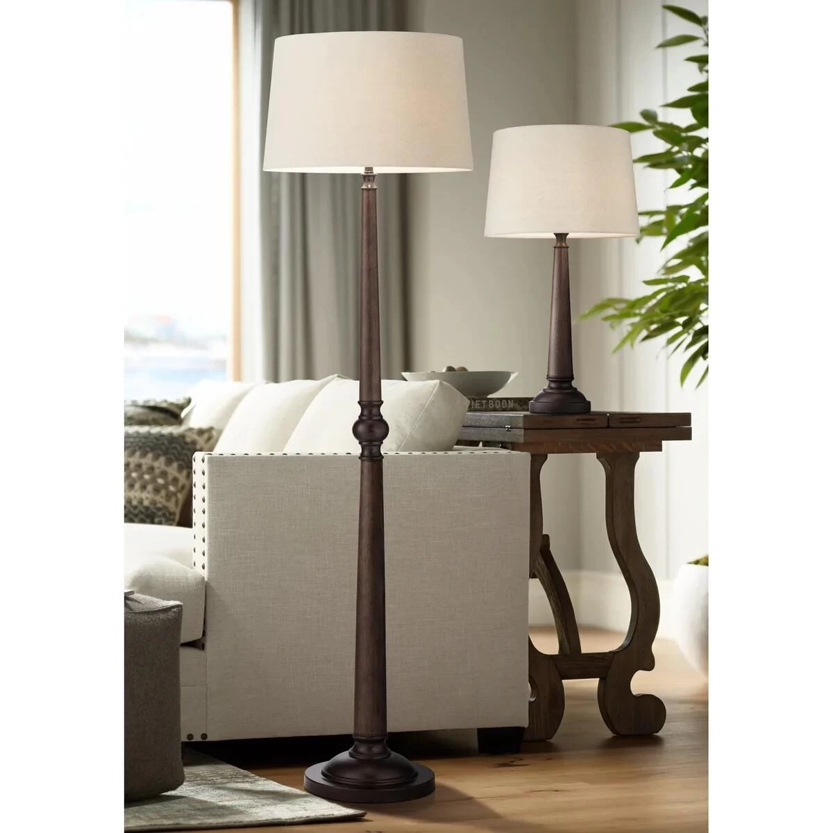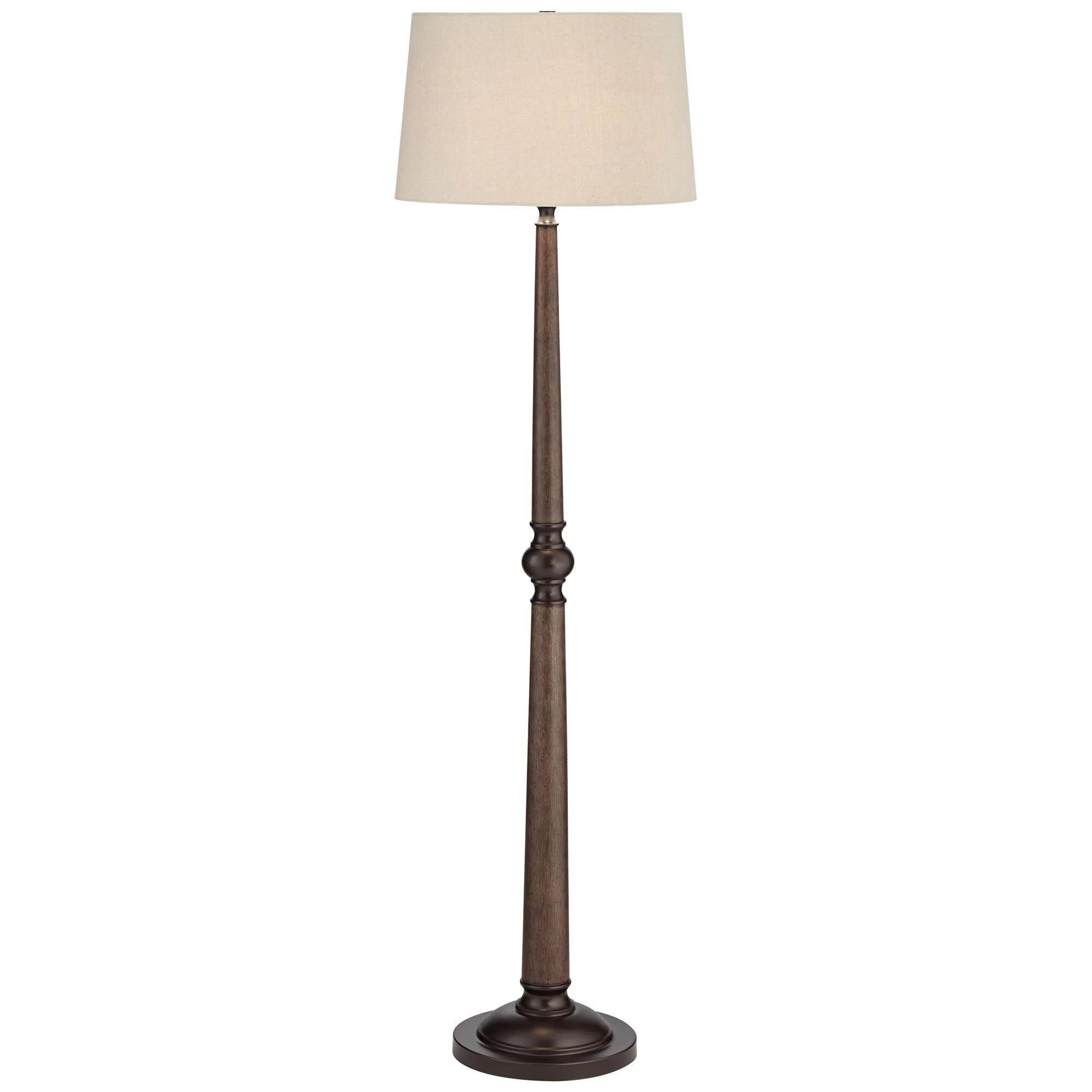 A simple farmhouse design for your home, the Arden floor lamp comes in a solid wood body dressed in a walnut finish. Bronze finish metal accents add an industrial touch. On top is a beige jute linen shade, the perfect finishing touch to this rustic floor lamp design.