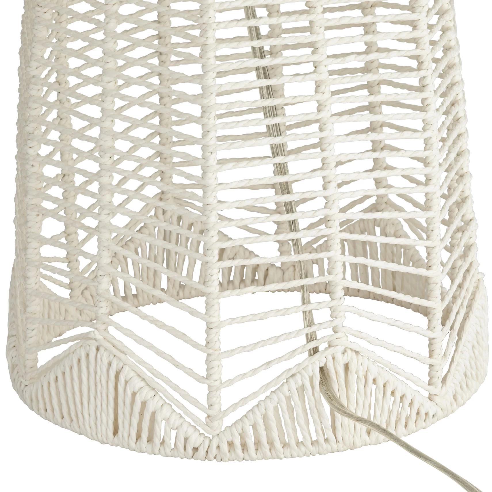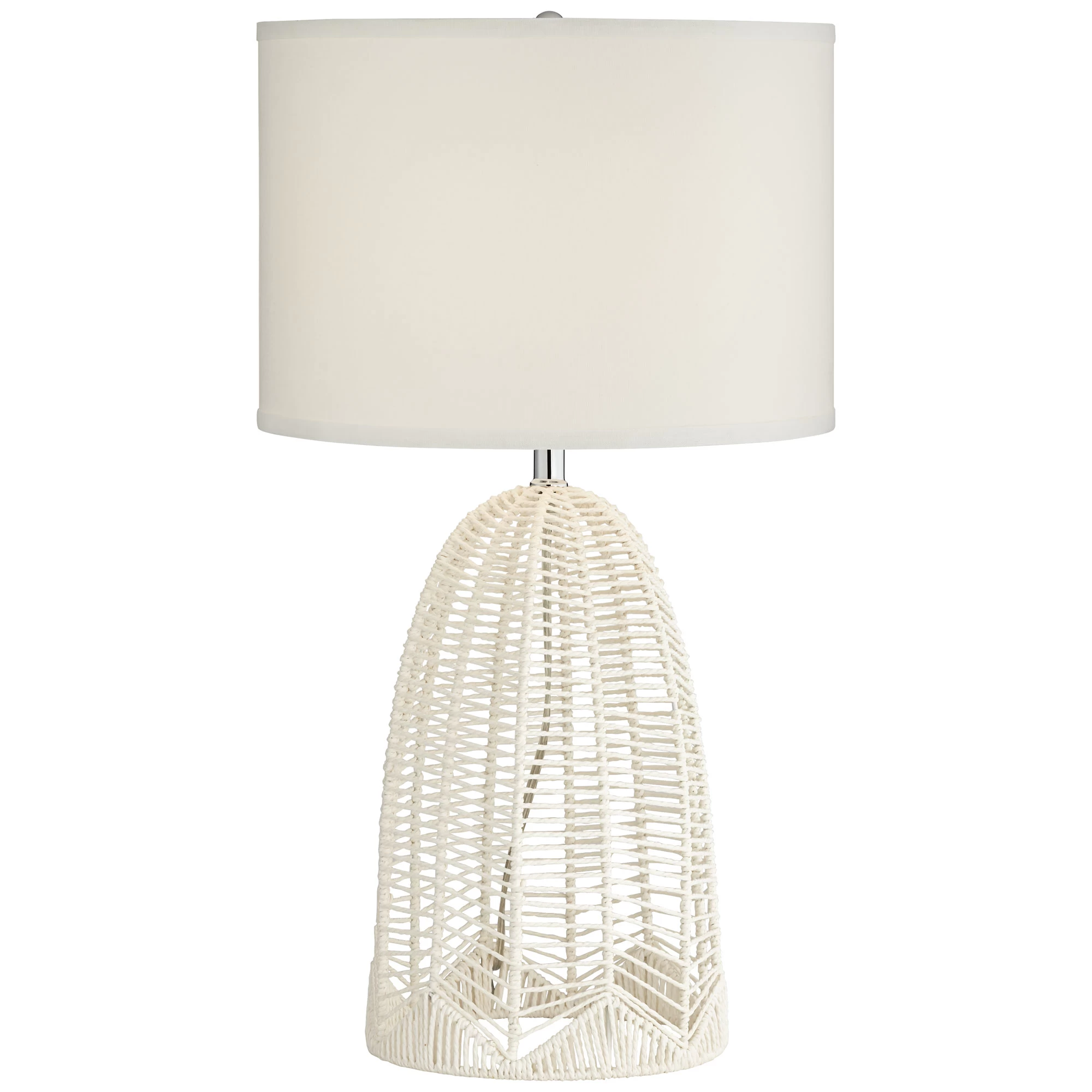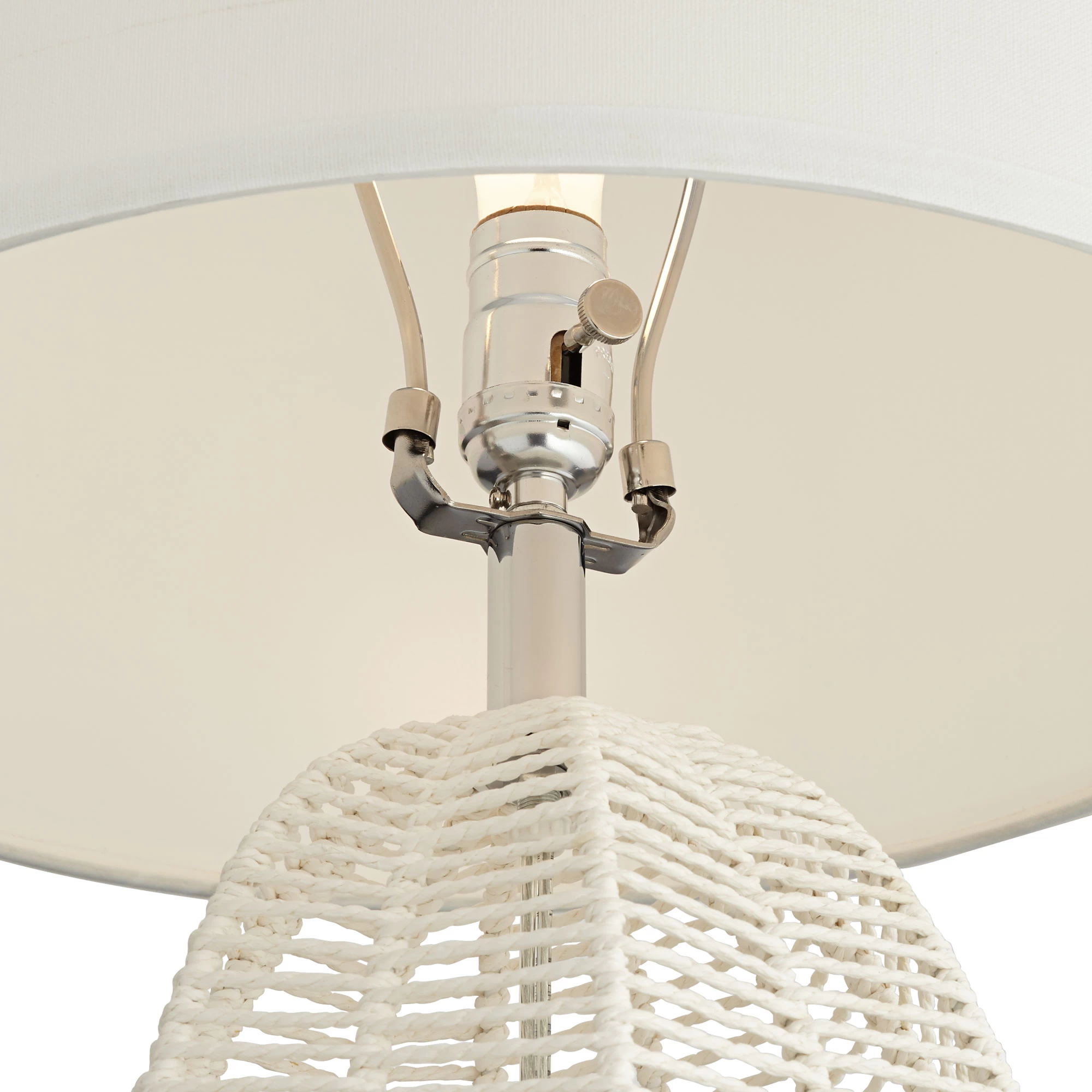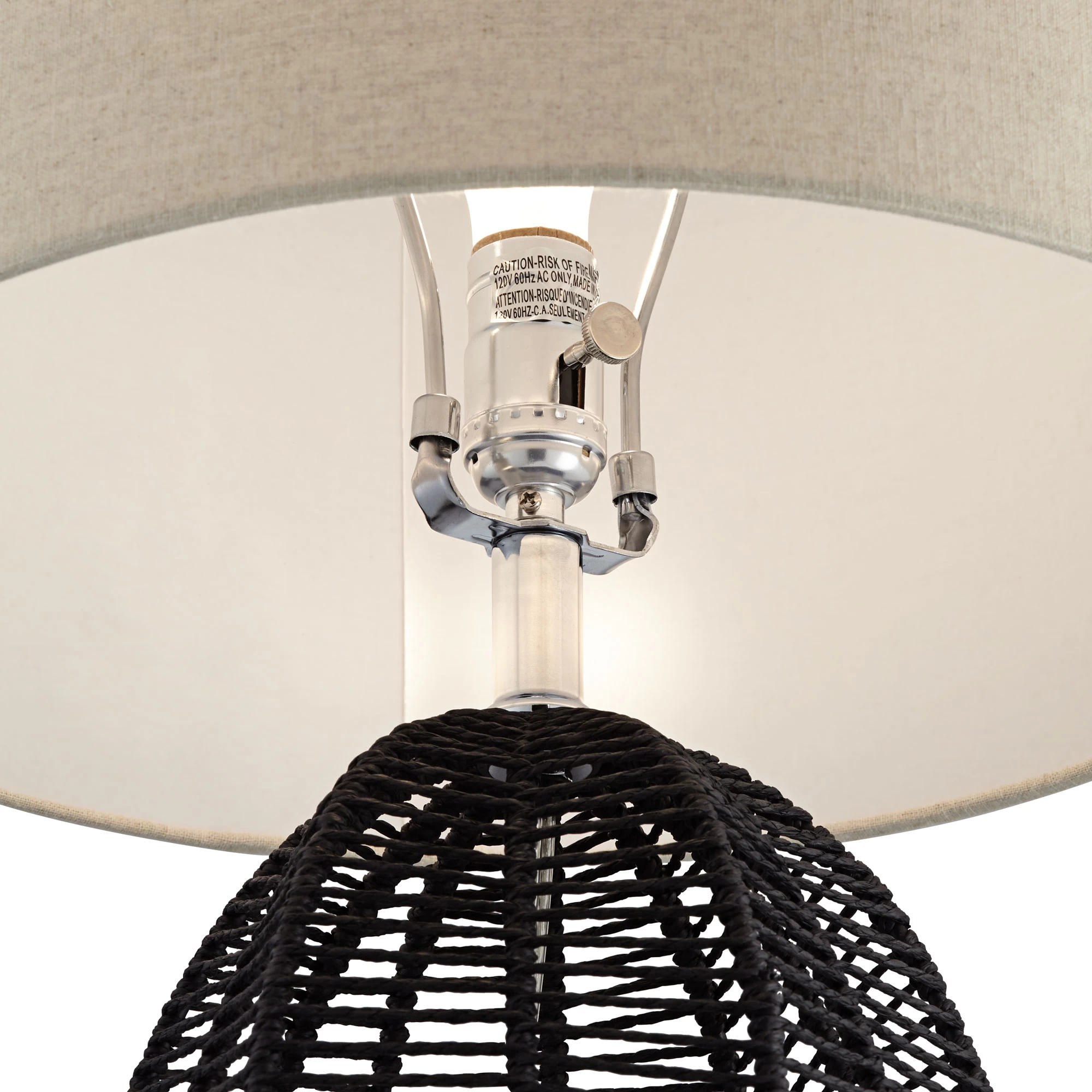 Bring in some natural elements in your space with the Aria Table Lamp. The intricate base has weaved black rope details, and it is topped with an oatmeal shade. It is a great addition for a contemporary or even a coastal themed home. On/off switch on socket.