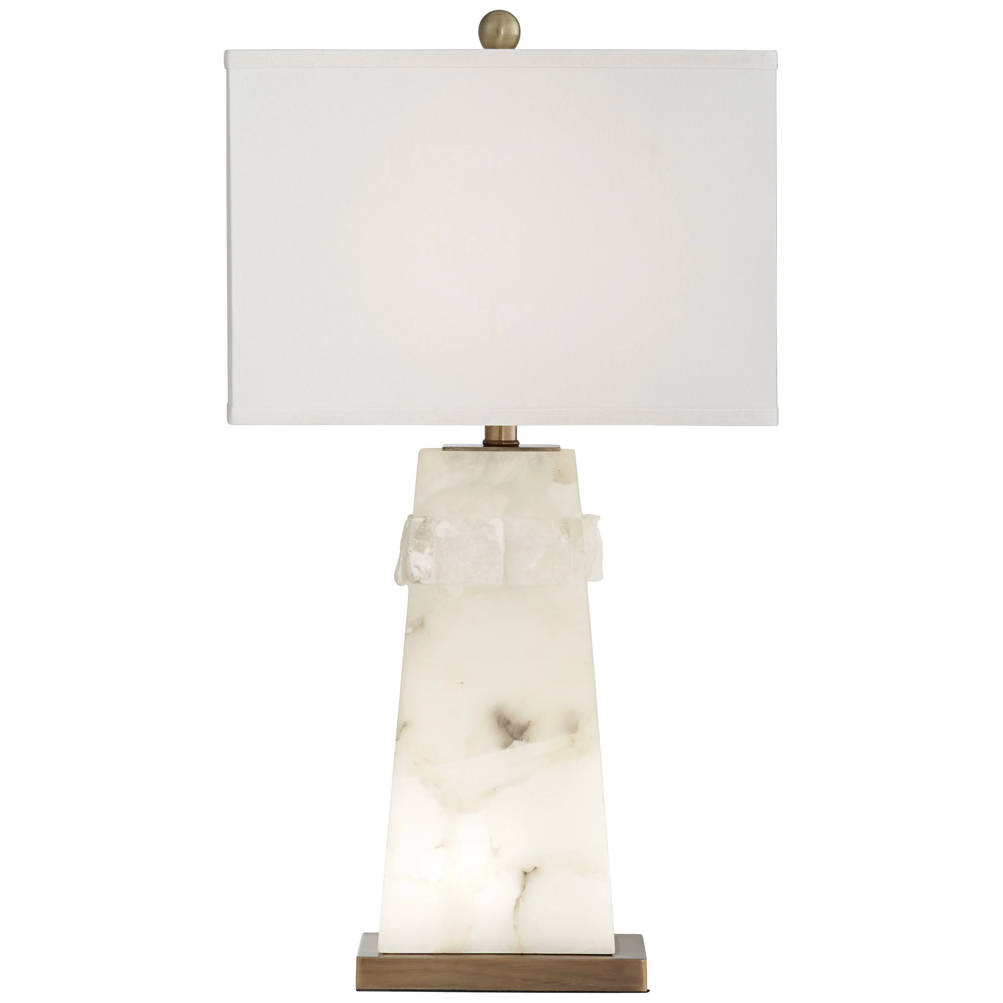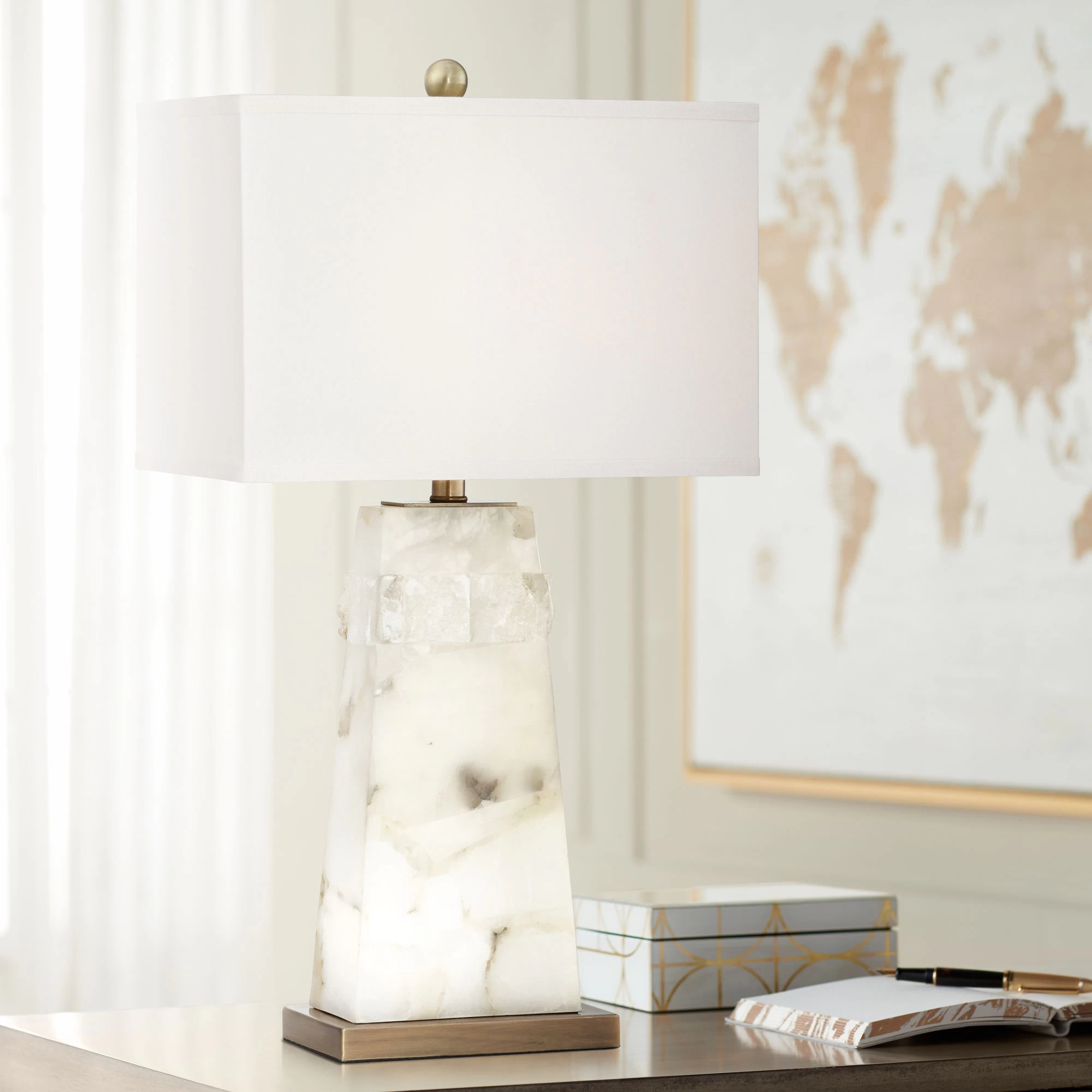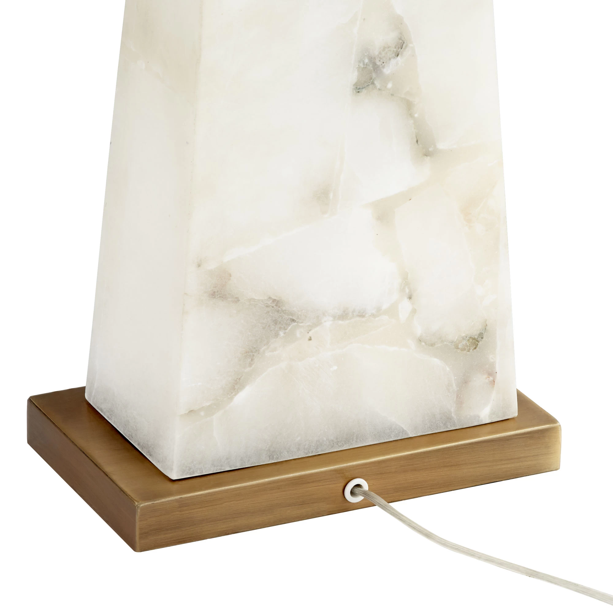 Incorporate the natural beauty of stone into your home with the Beaumont Table Lamp. The resin base features a hidden night light that softly shines through a translucent alabaster finish. A rectangular faux silk shade and brass finished foot add a finishing touch. A rotary switch is installed on the socket.