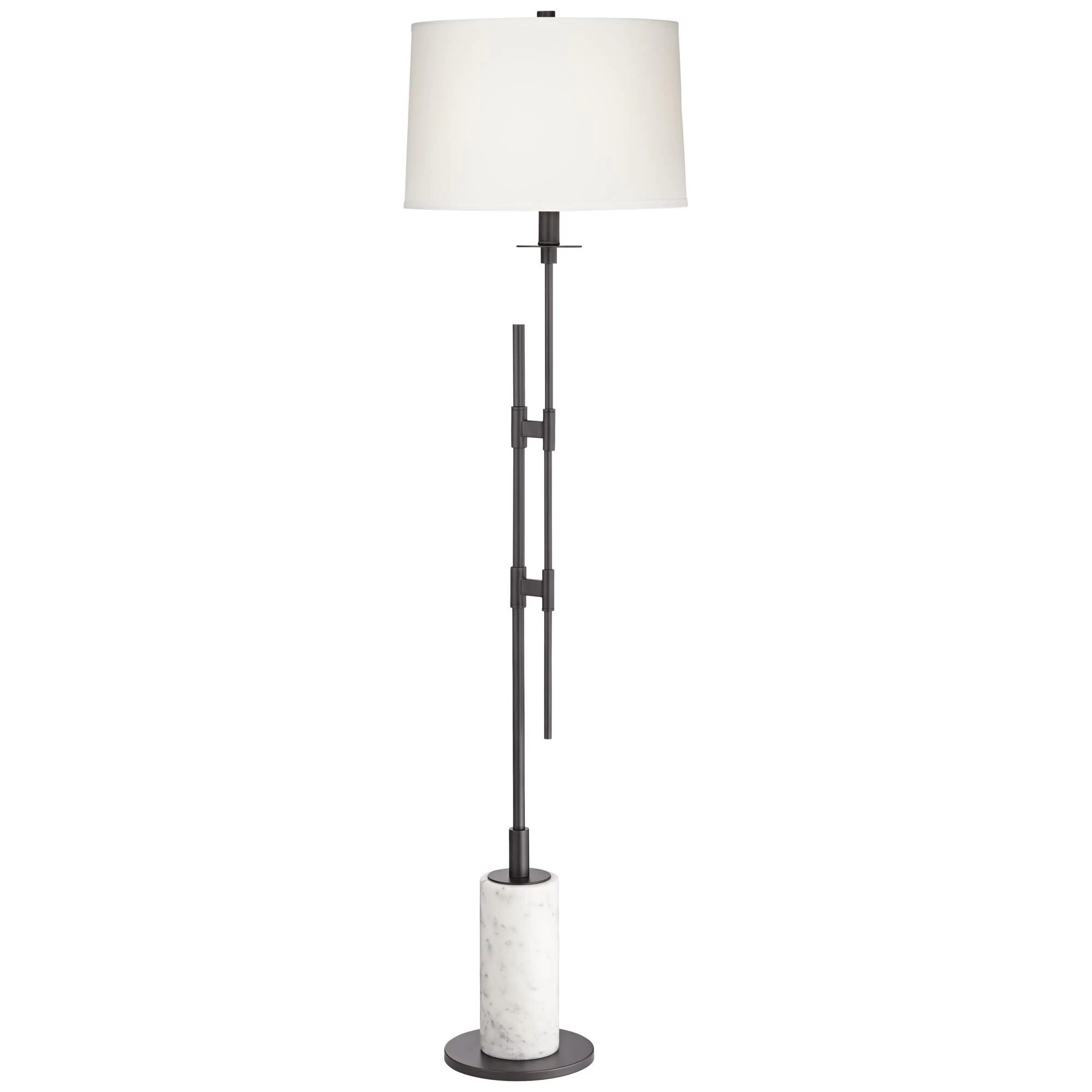Create a living space that brims with modern elegance. Smooth, sleek, and endlessly chic, this metal and marble chairside lamp has a futuristic look that adds a contemporary accent to any space. Lines of gunmetal finish metal flow between a white marble base and white linen shade for a look of artful harmony