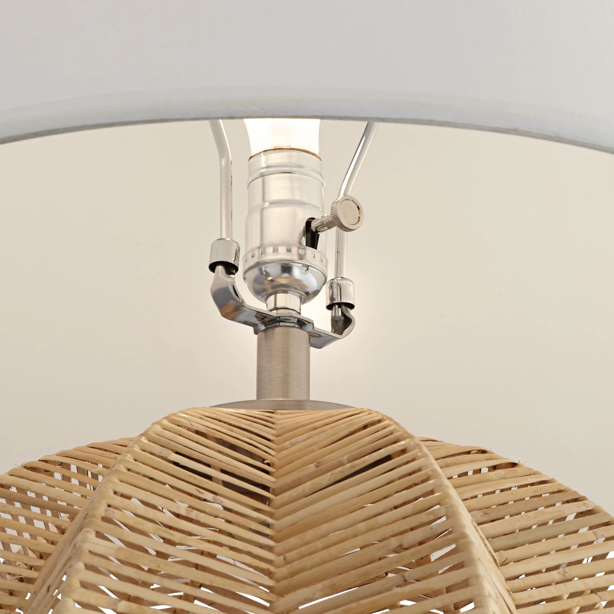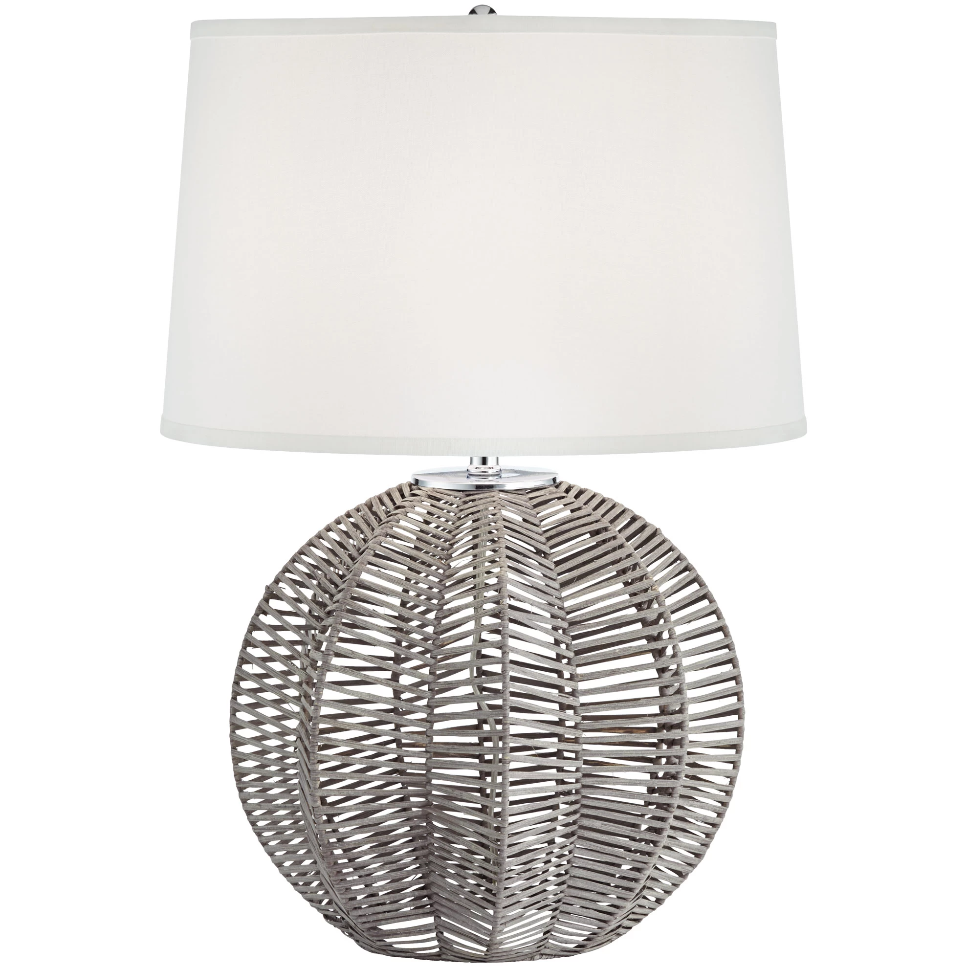 The Boca Table Lamp offers a coastal-inspired accent with its round rattan body. Concaving folds in the body add an accordion-like texture that complements the horizontal rattan bands. A tapered linen shade tops the piece for a cool, casual look. Available in three finish options. On/off switch located on socket.