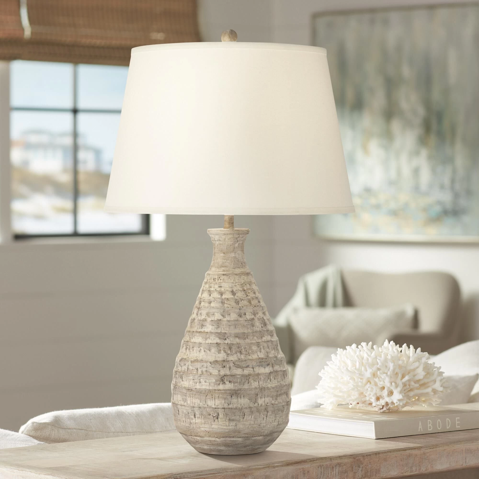 Delicately scraped grooves surround this gray jar table lamp, presenting a highly textured appearance and earthenware-inspired aesthetic. A gray finish elevates the simplistic old world expression, offering a charming color palette that allows the craftsman influences to carry through. Keep this gray table lamp in a contemporary interior for an elegantly understated setting.