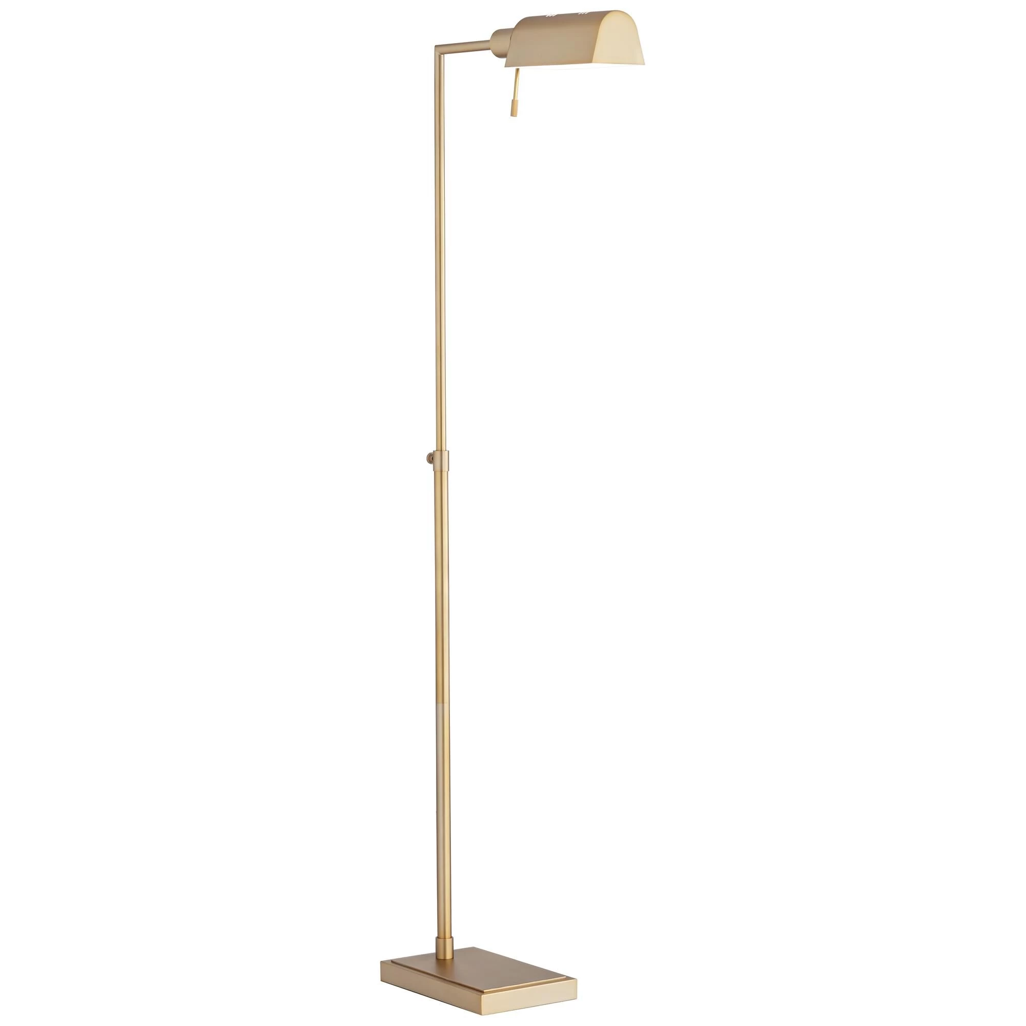 This pharmacy style floor lamp allows you to position the light source where you need it. In a matte warm gold finish that covers the entire design for a clean and streamlined look. Perfect next to a seating or reading area.