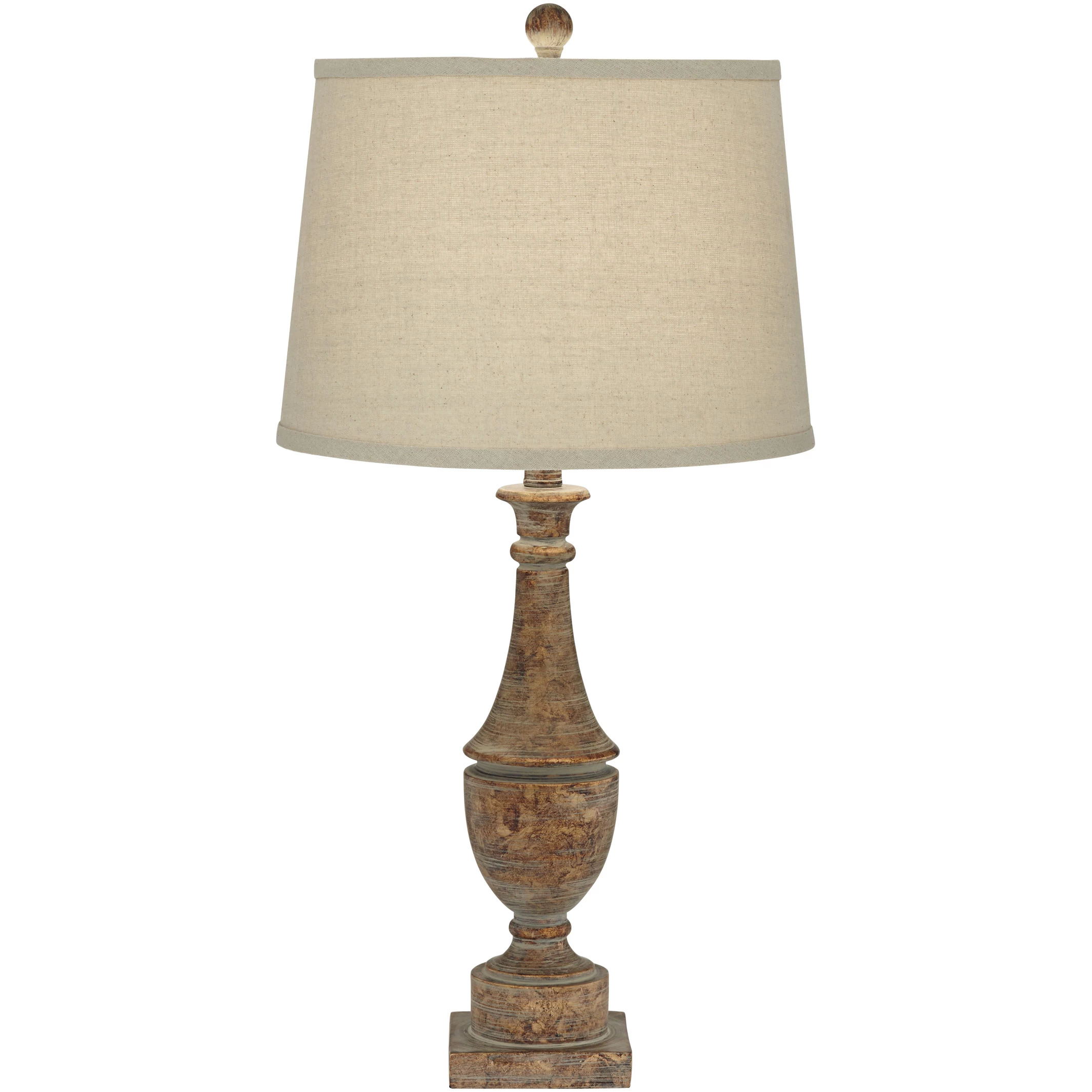 The Collier Table Lamp Set includes a pair of resin lamps with traditional elegance. Their curving silhouette is reminiscent of turned wood, and a patinaed Bronze finish gives the lamps a vintage inspired feel. The look is a completed with a tapered linen shade. On/off switch on socket.