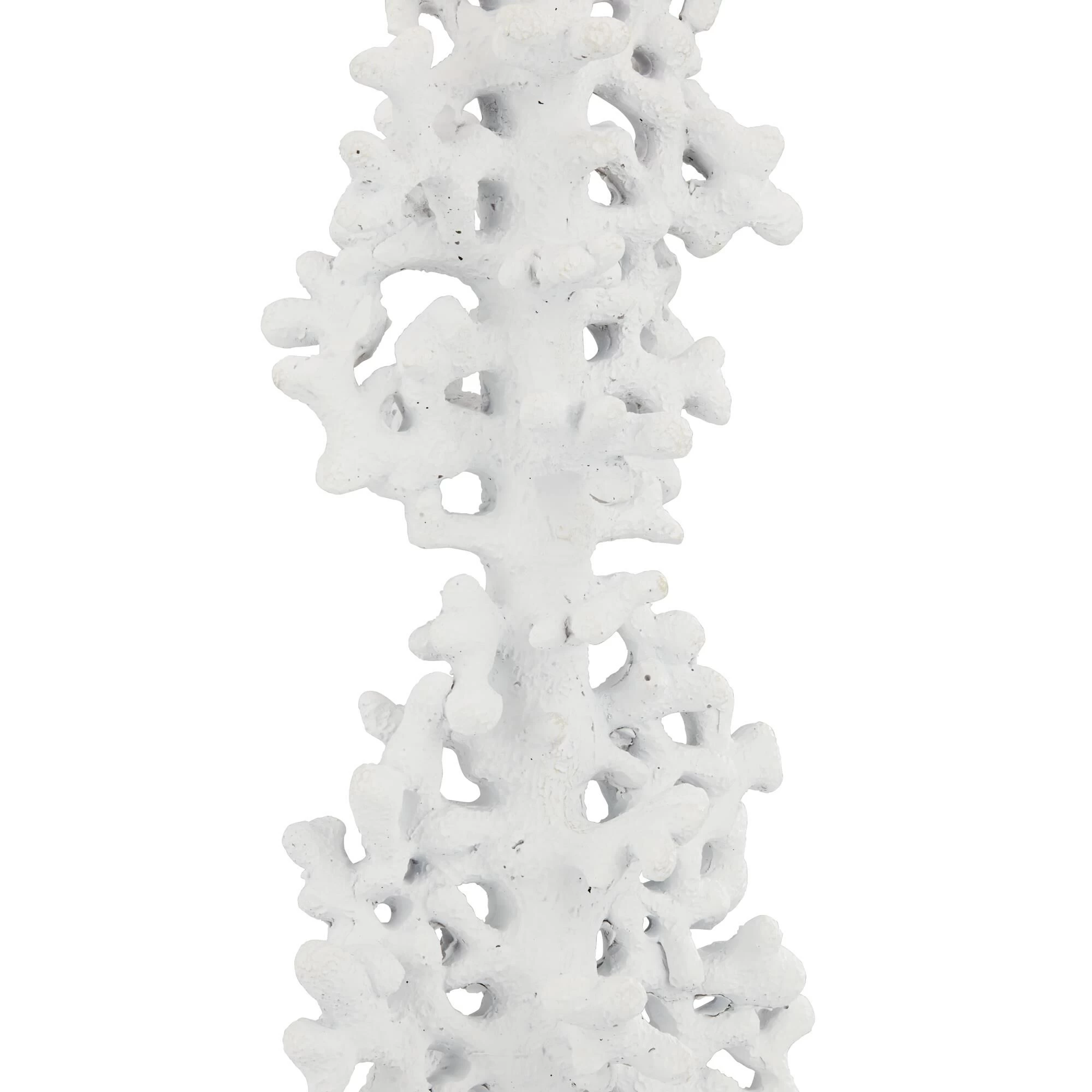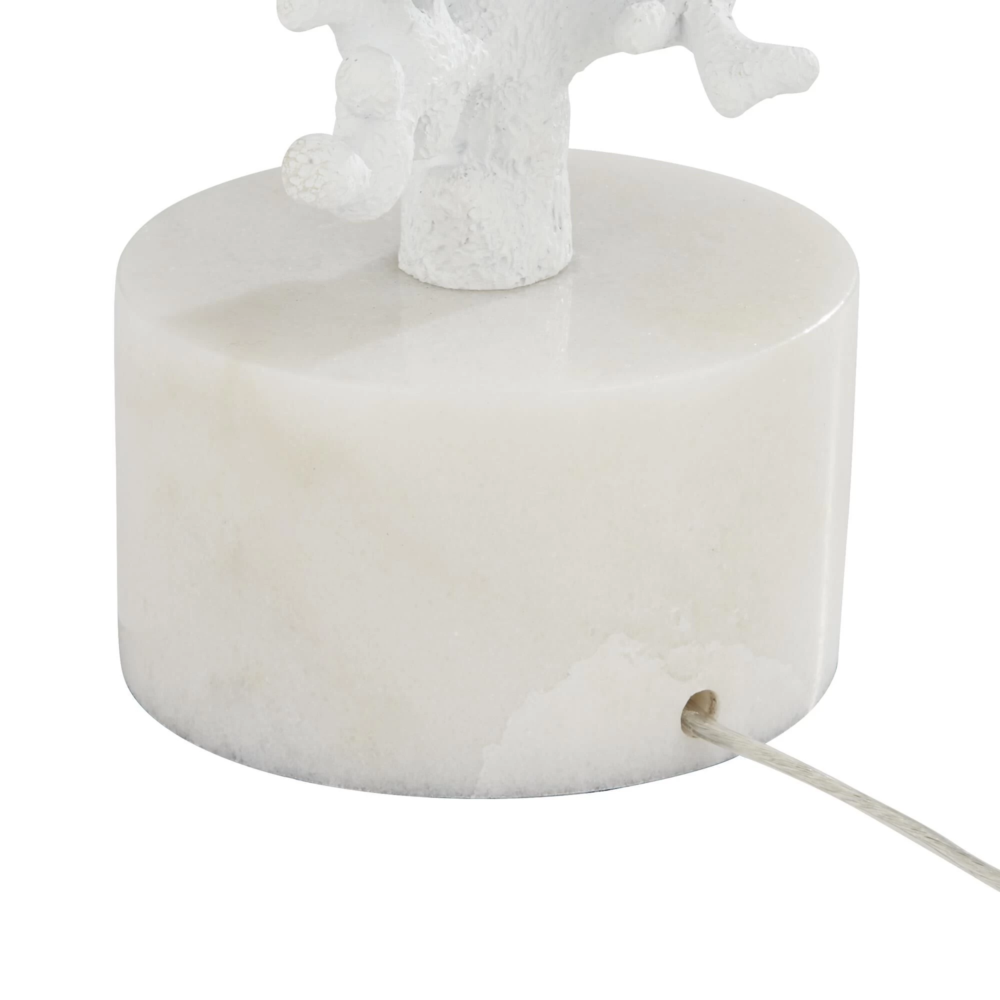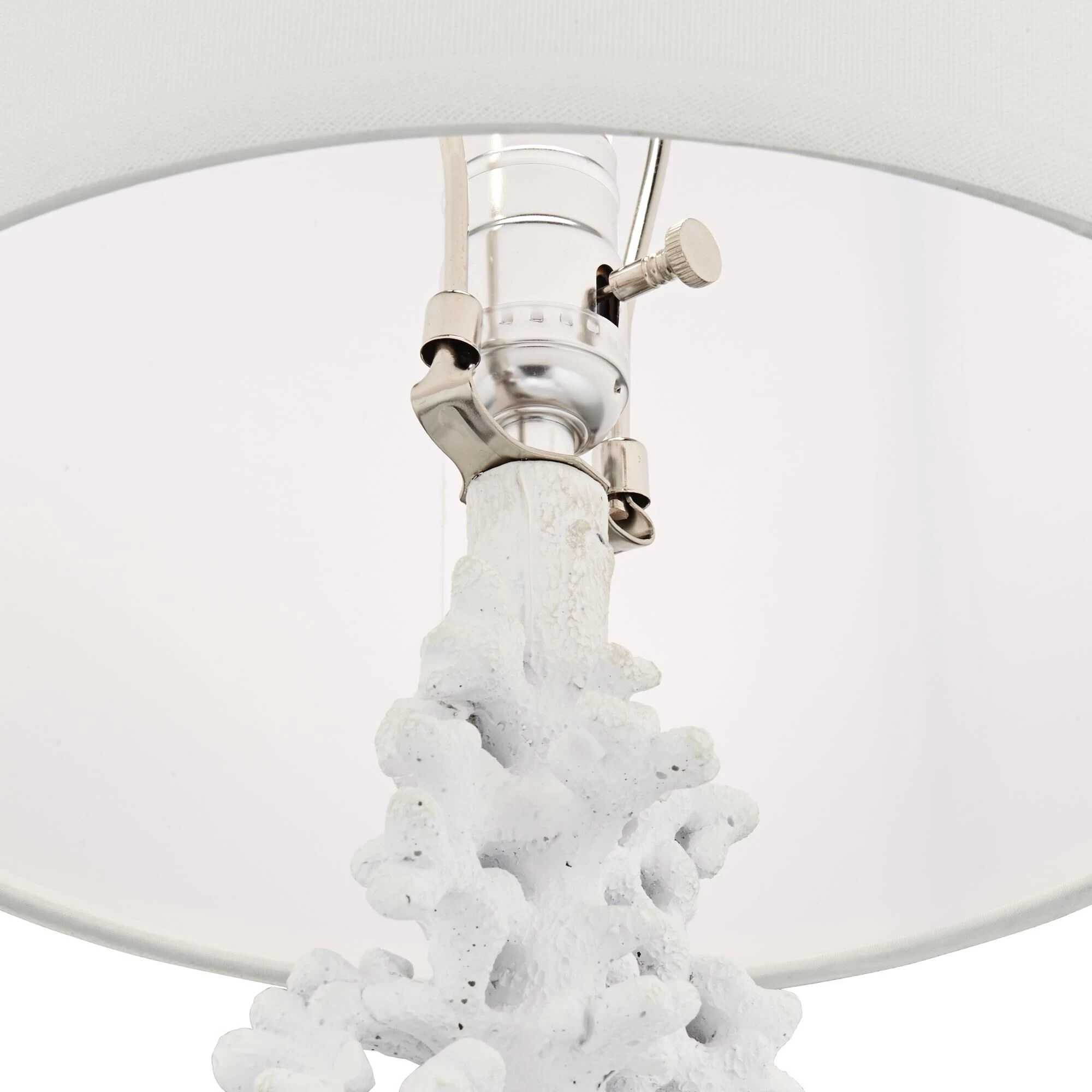 Put the finish touches on a coastal living space with this charming set of two faux coral table lamps. Each features a drum shade and a white finish for a monochromatic, textured look and feel. Tall, round bases resemble stone and clear ball finials ensure a polished final touch for each lamp.