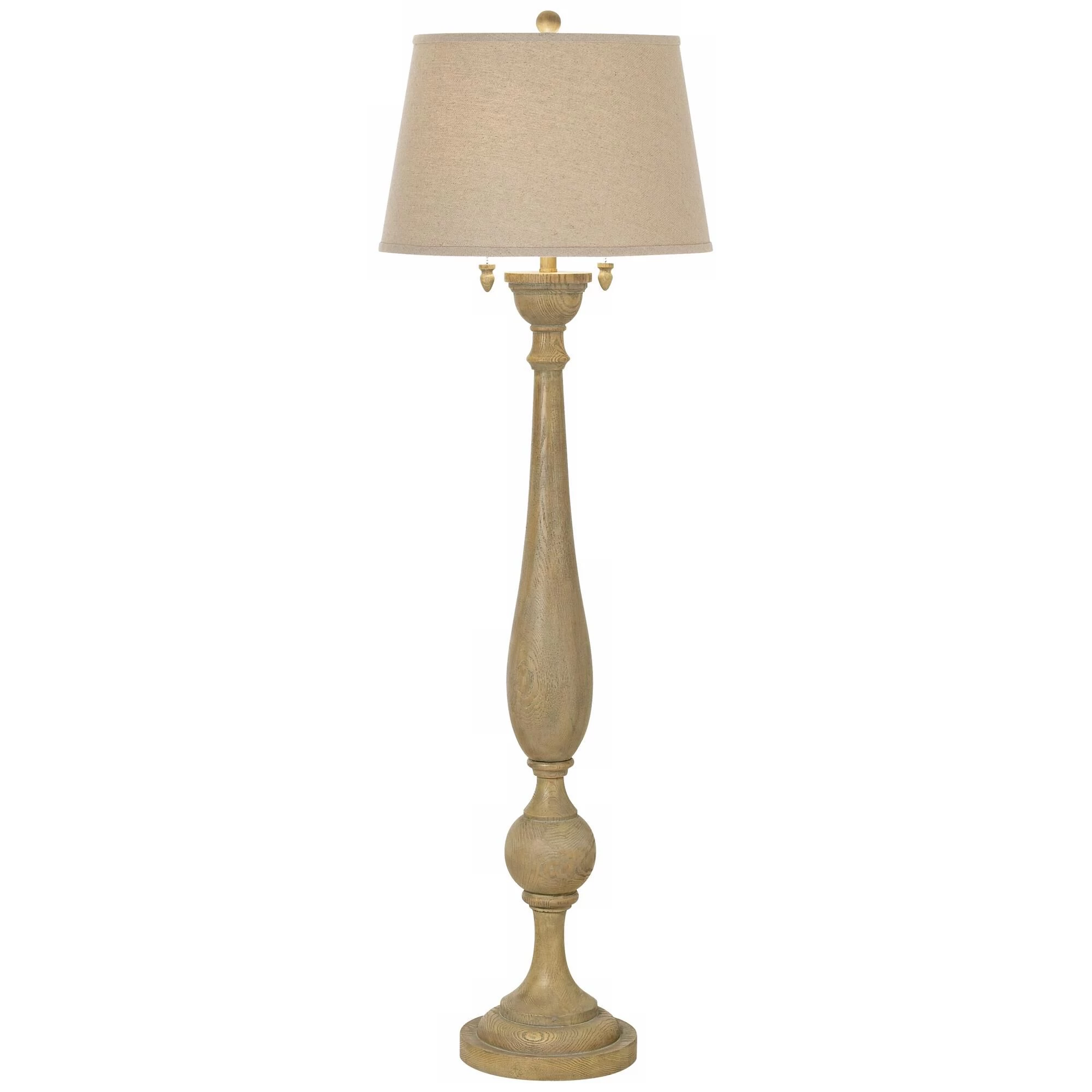 Bring traditional flair to any living are or bedroom with the classic details featured on this Grand Maison floor lamp with a weathered woodland finish and linen shade.
