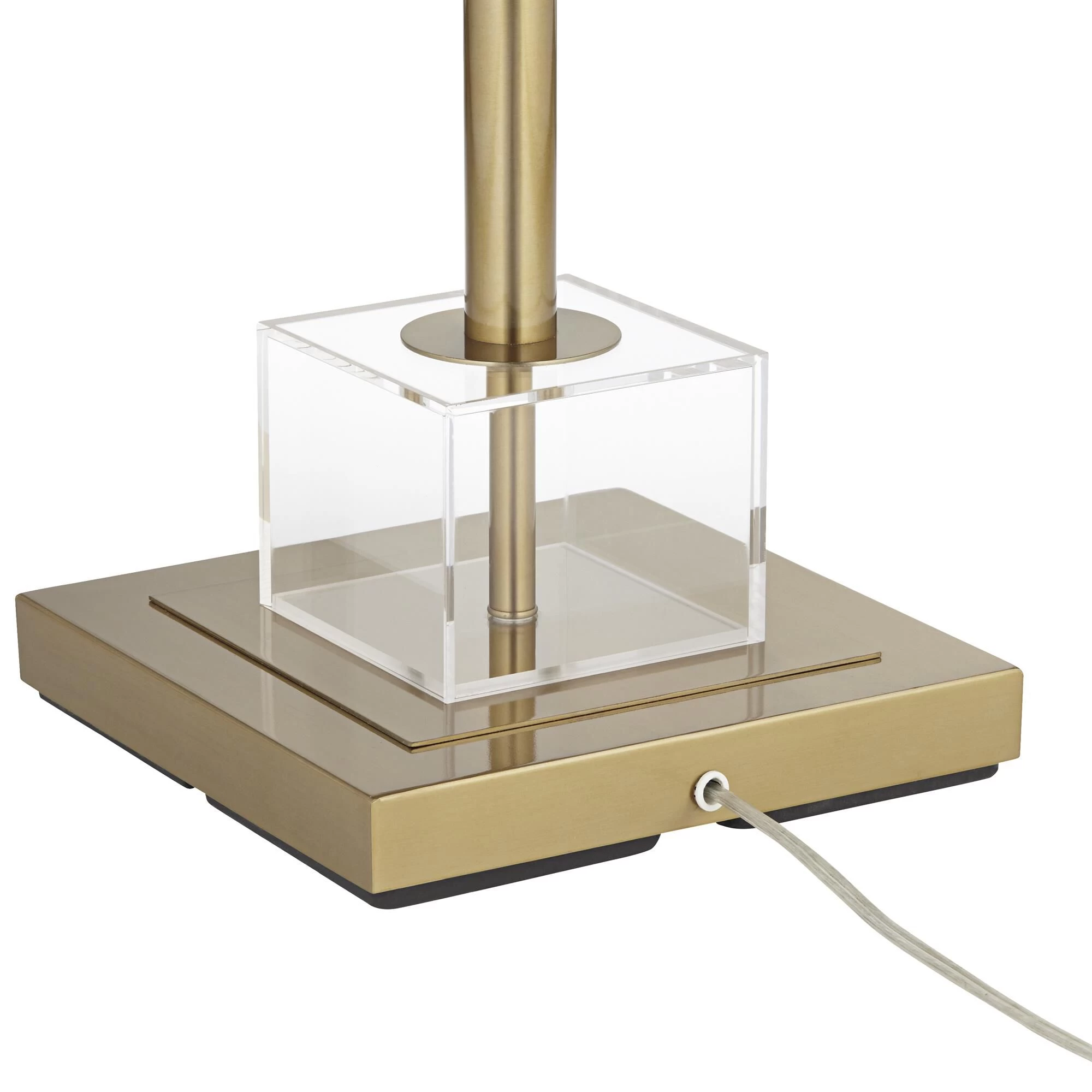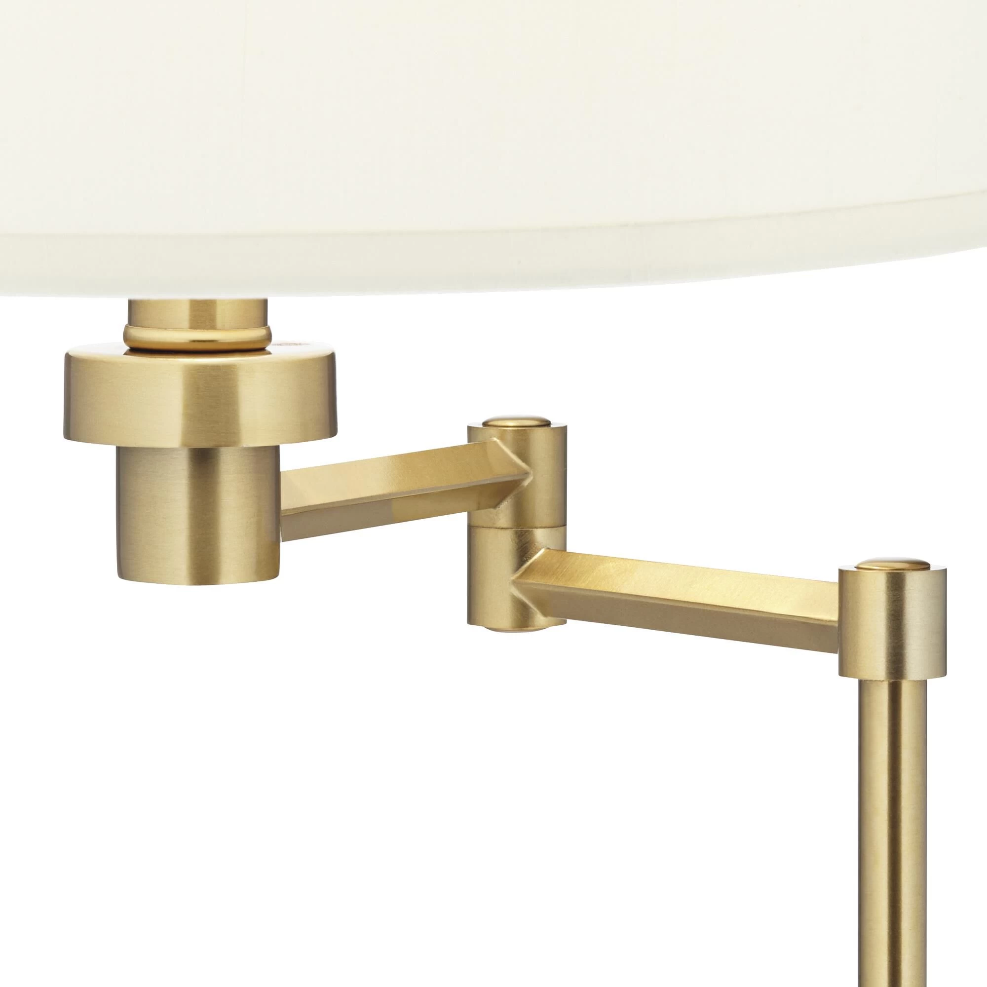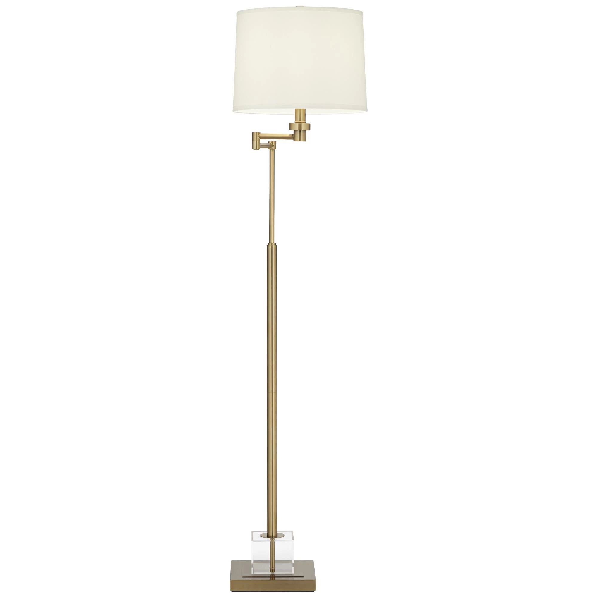 Traditional elements merge with sleek glam details in this swing arm floor lamp. Designed with a slender warm gold frame with transparent acrylic accents, this elegantly understated floor lamp is as refined as it is versatile. Swing the faux silk shade over seating for a bright and beautiful glow.