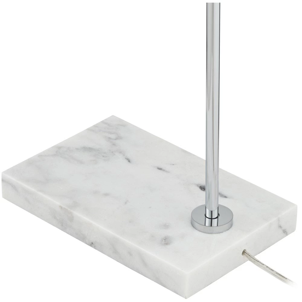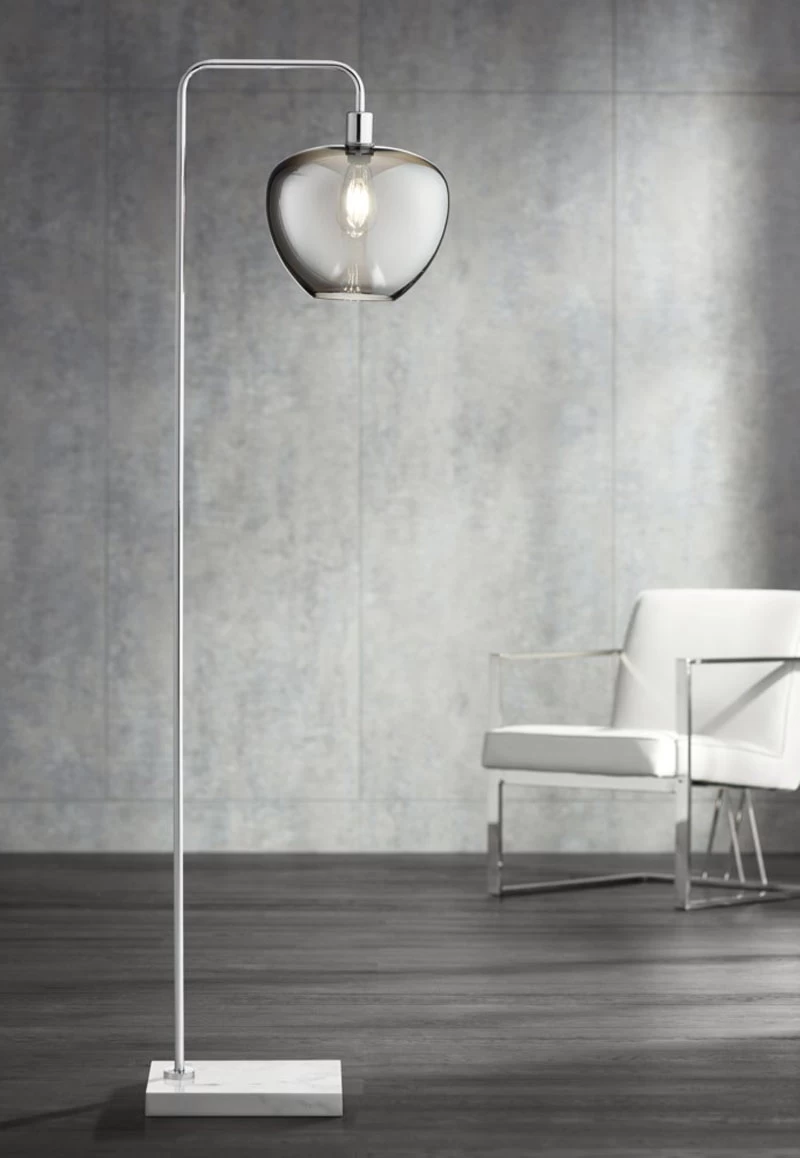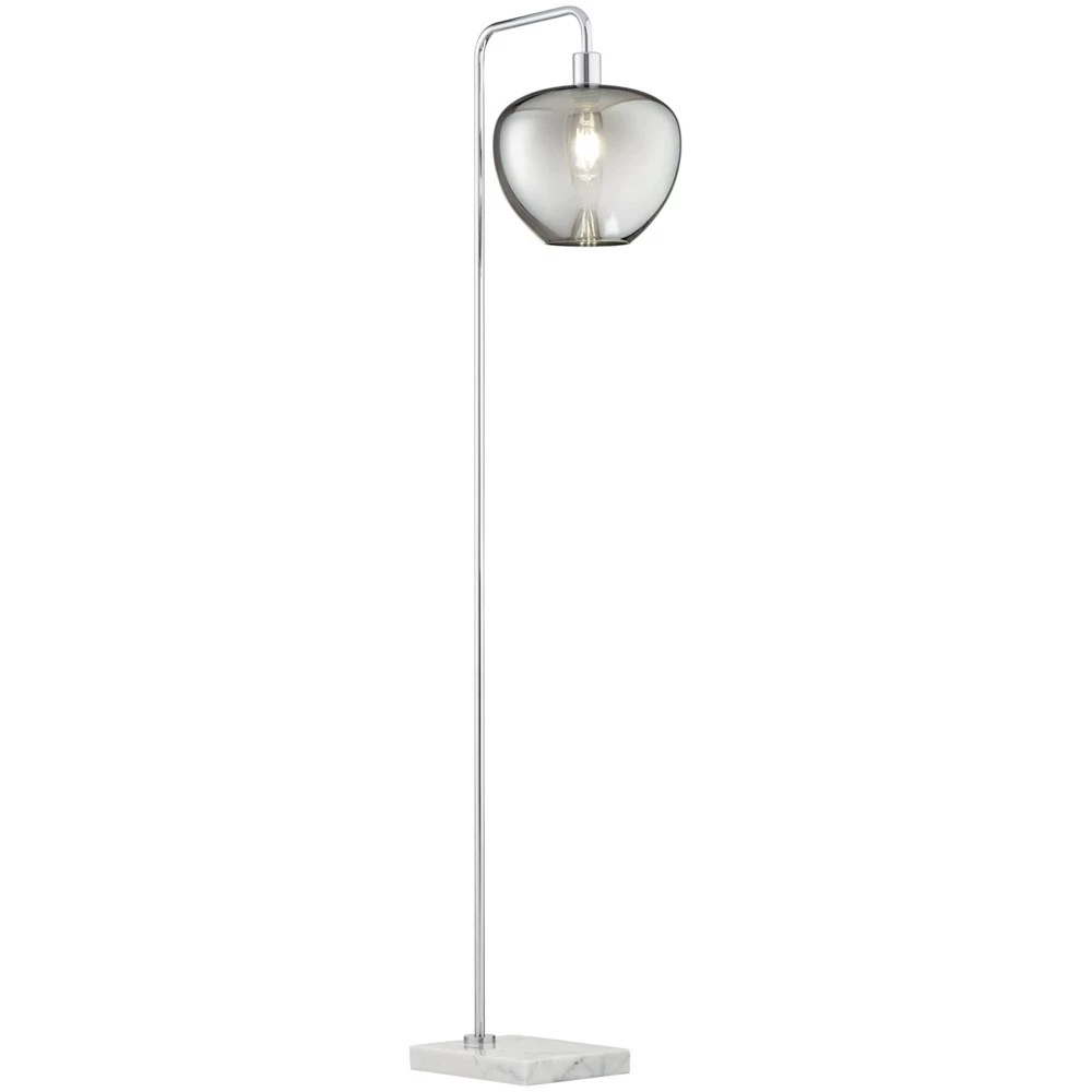 The Gregory Floor Lamp features a smoked glass shade suspended from a chrome downbridge frame. A rectangular marble finish base adds a luxurious touch to the piece’s contemporary design. An LED Edison bulb is included. On/off footswitch located on cord.