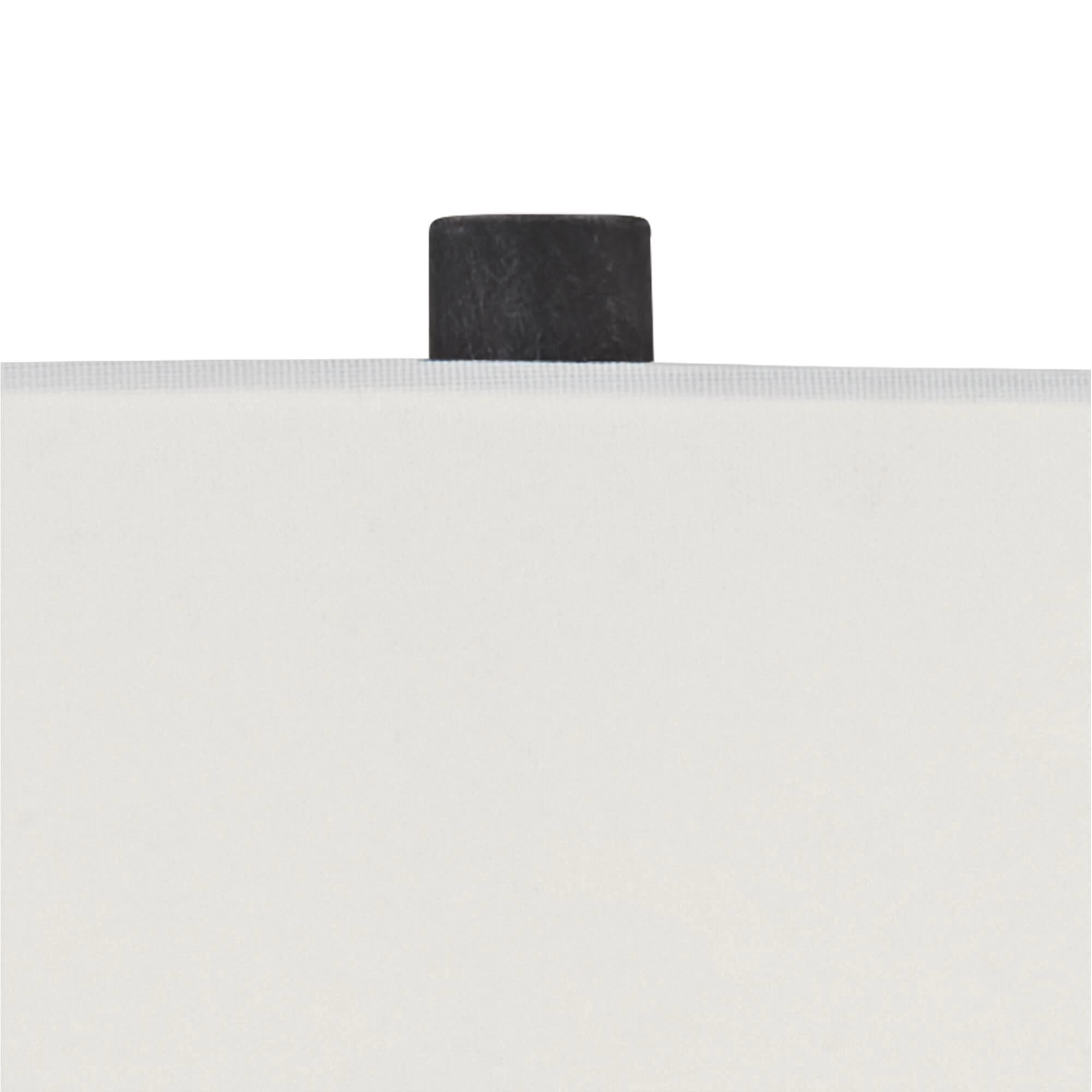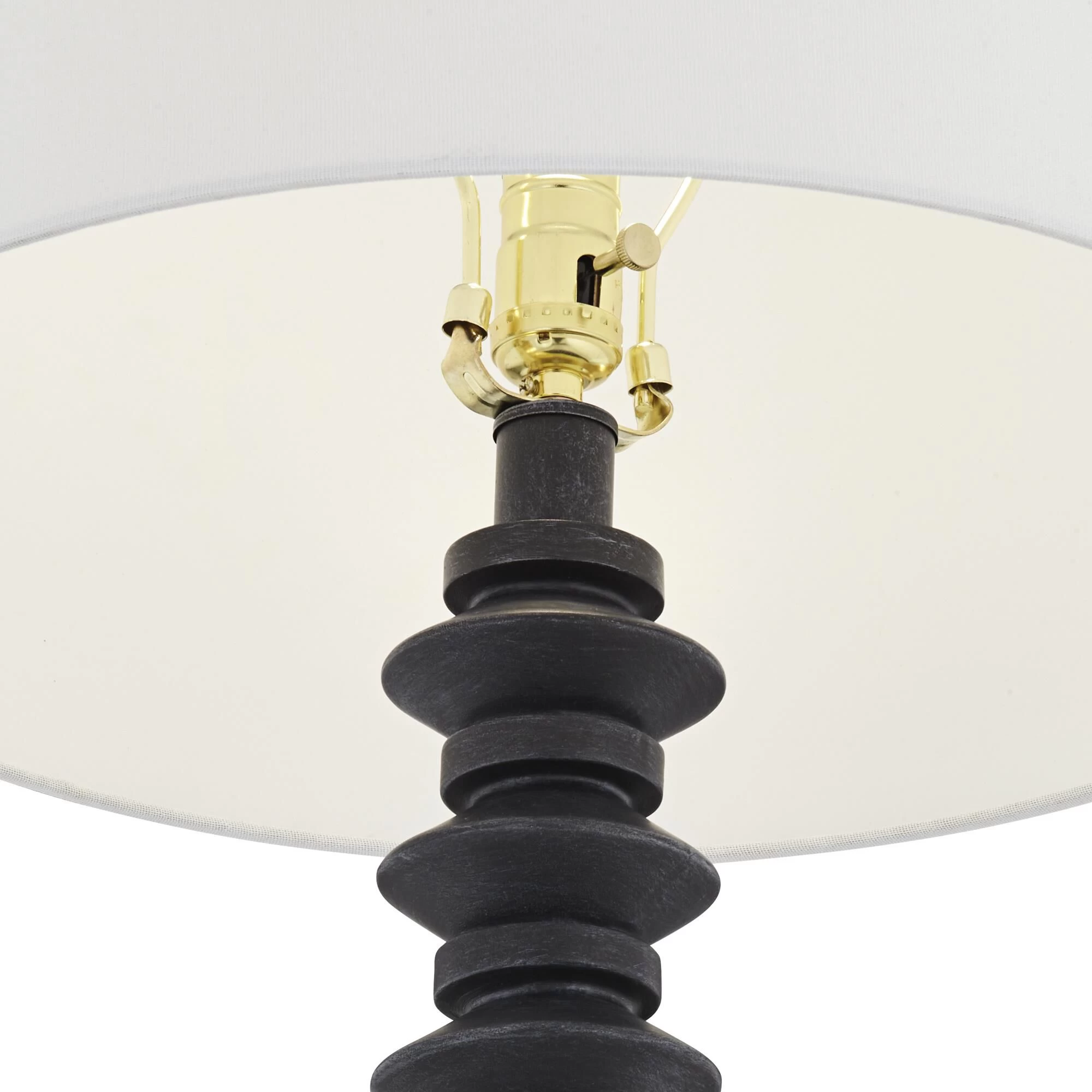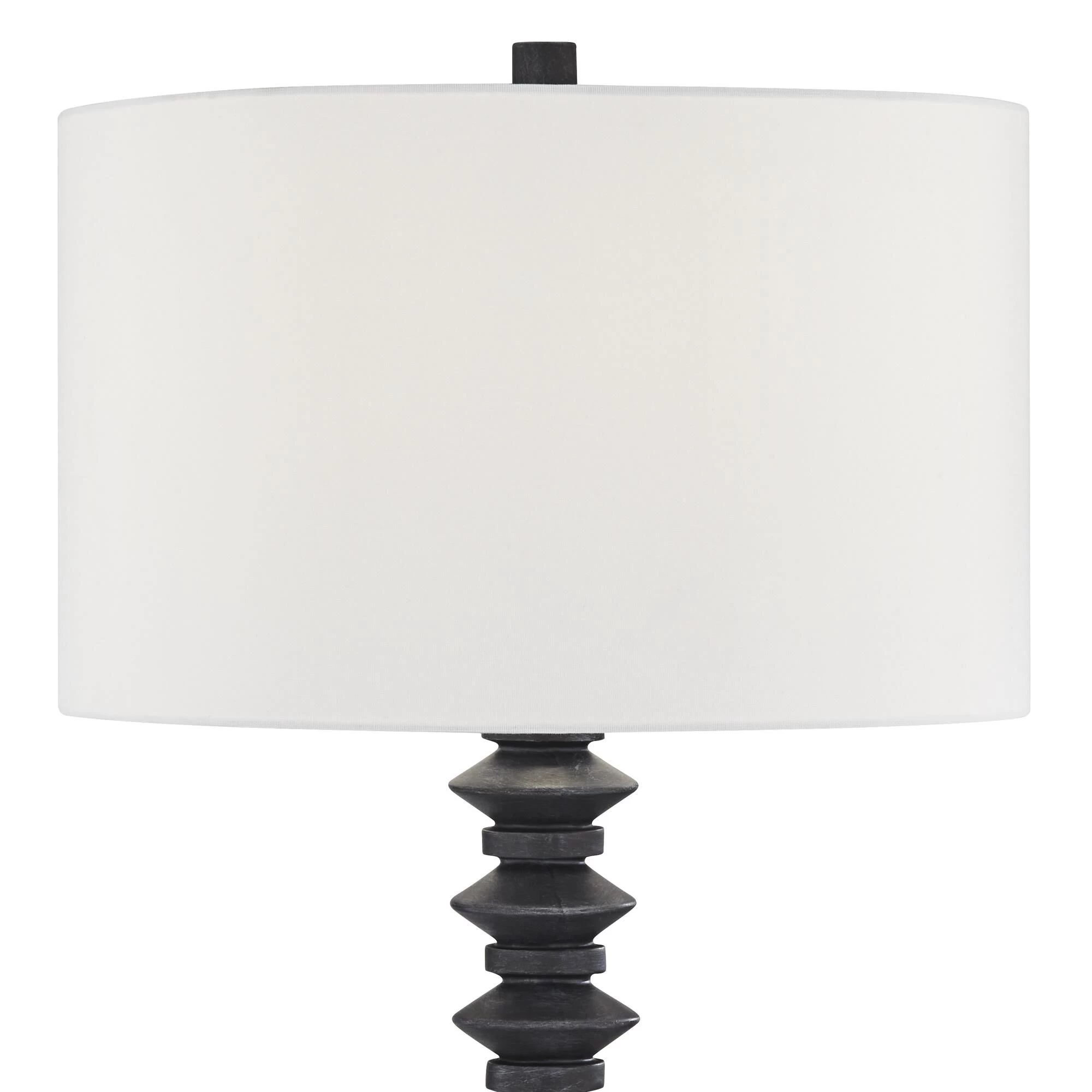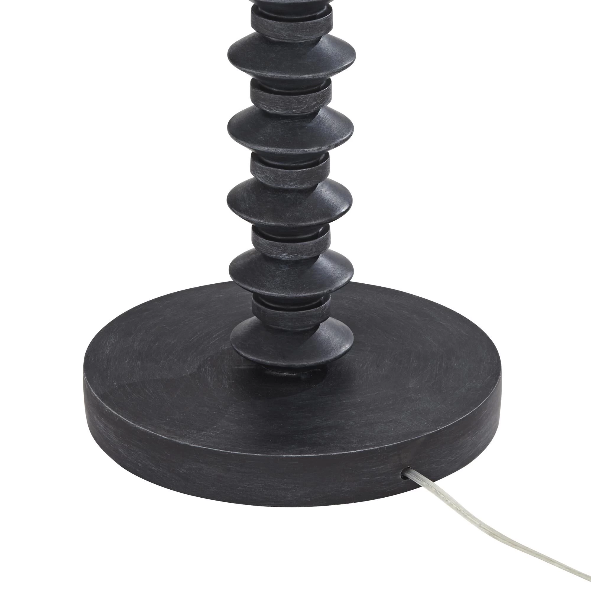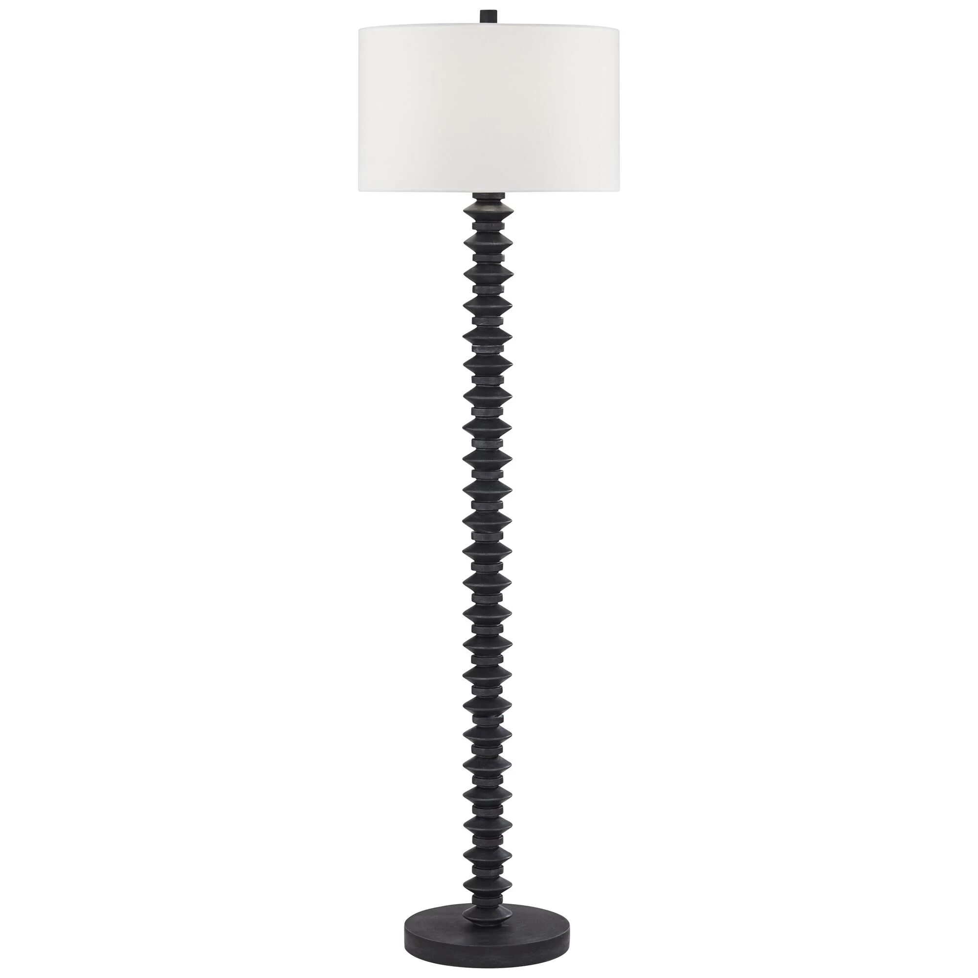 Reminiscent of stacked cairn stones, this black column lamp presents vibrating textures that shimmer up and down. A slender black stand lends a simplistic modern silhouette overall, offset by the jagged edges. Topped off by a linen shade, this floor lamp gives off a lovely illumination and soft texture that is easy on the eyes.