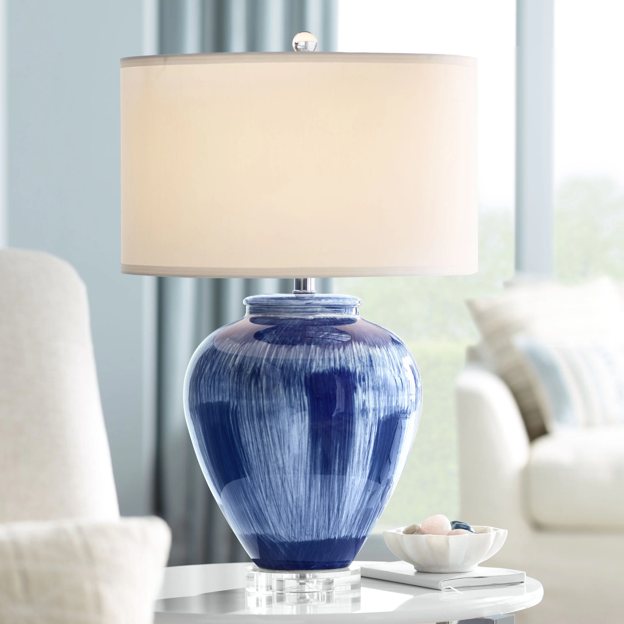 Bring a burst of color to your space with the Indie Table Lamp, featuring a vase-shaped ceramic base with a blue brushstroke finish. Topped with a white drum shade, Indie complements a variety of interior styles.