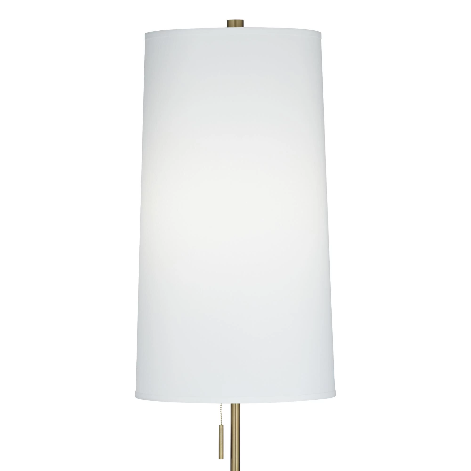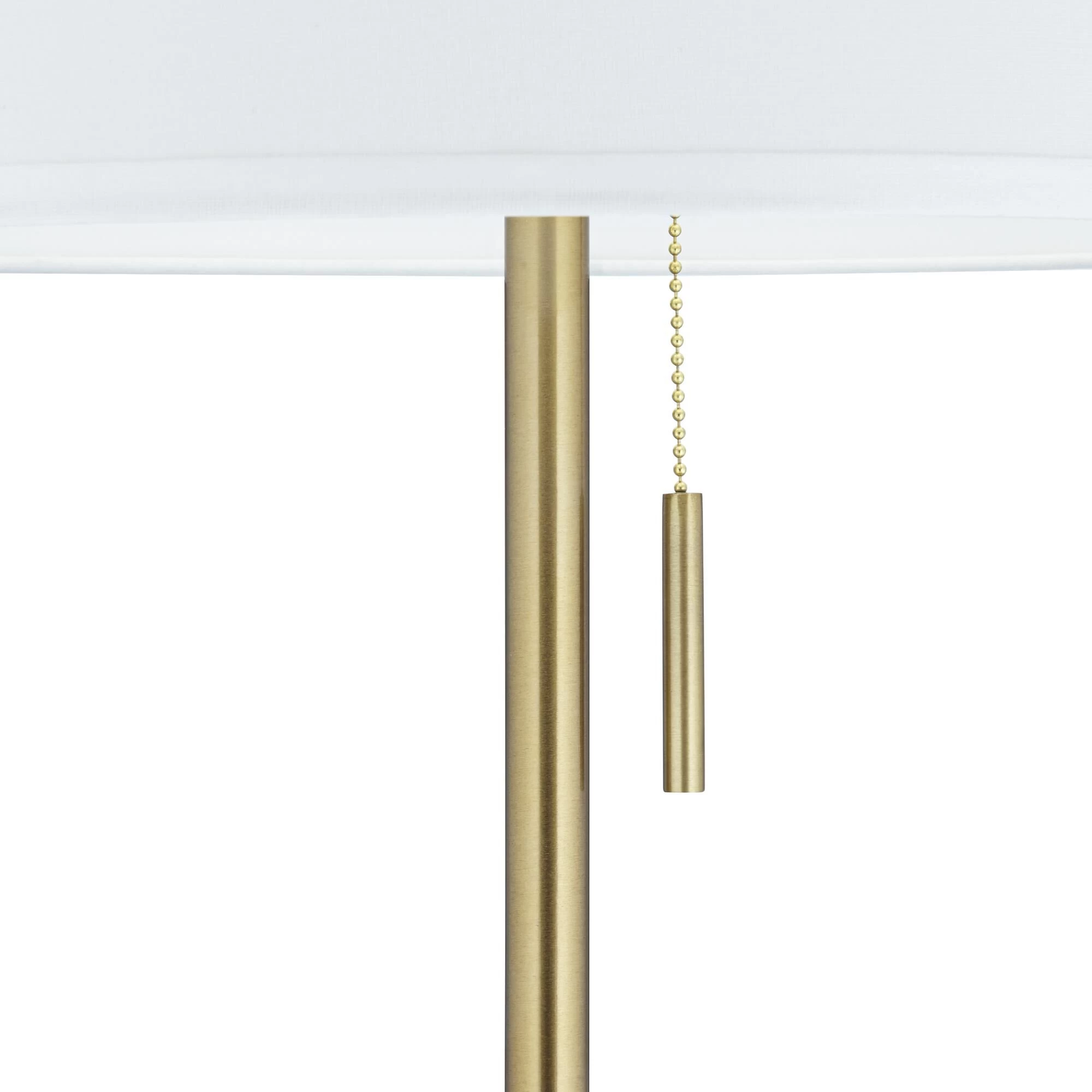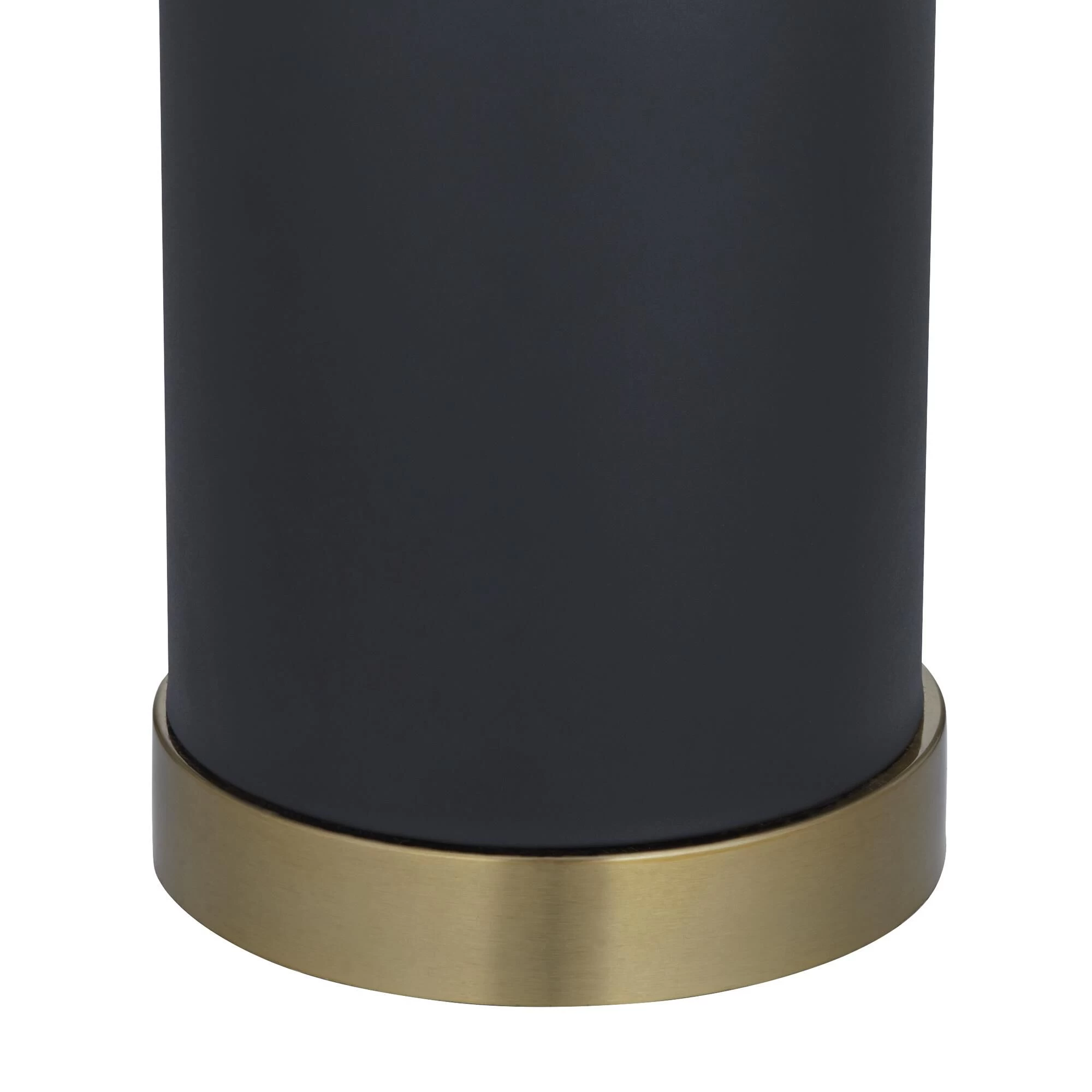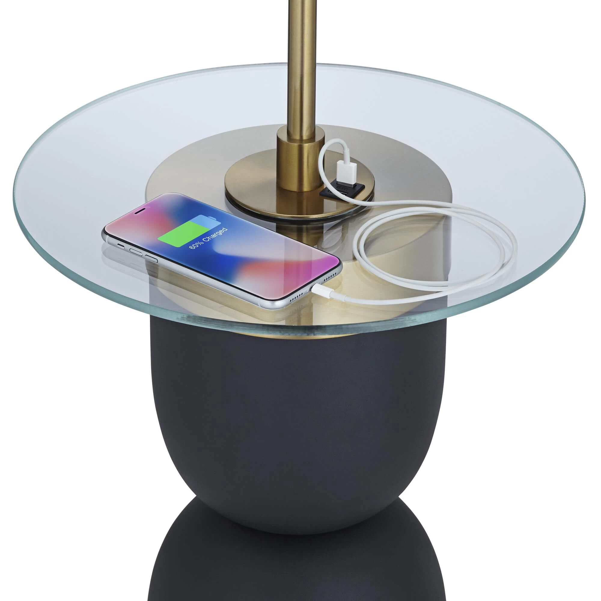A bold hourglass base brings formality and sophistication to this contemporary metal floor lamp. Complete with a clear tray table, it’s the perfect addition to an elegant sitting area. A black finish is accentuated with hints of gold and a tall shade on top only enhances its verticality.