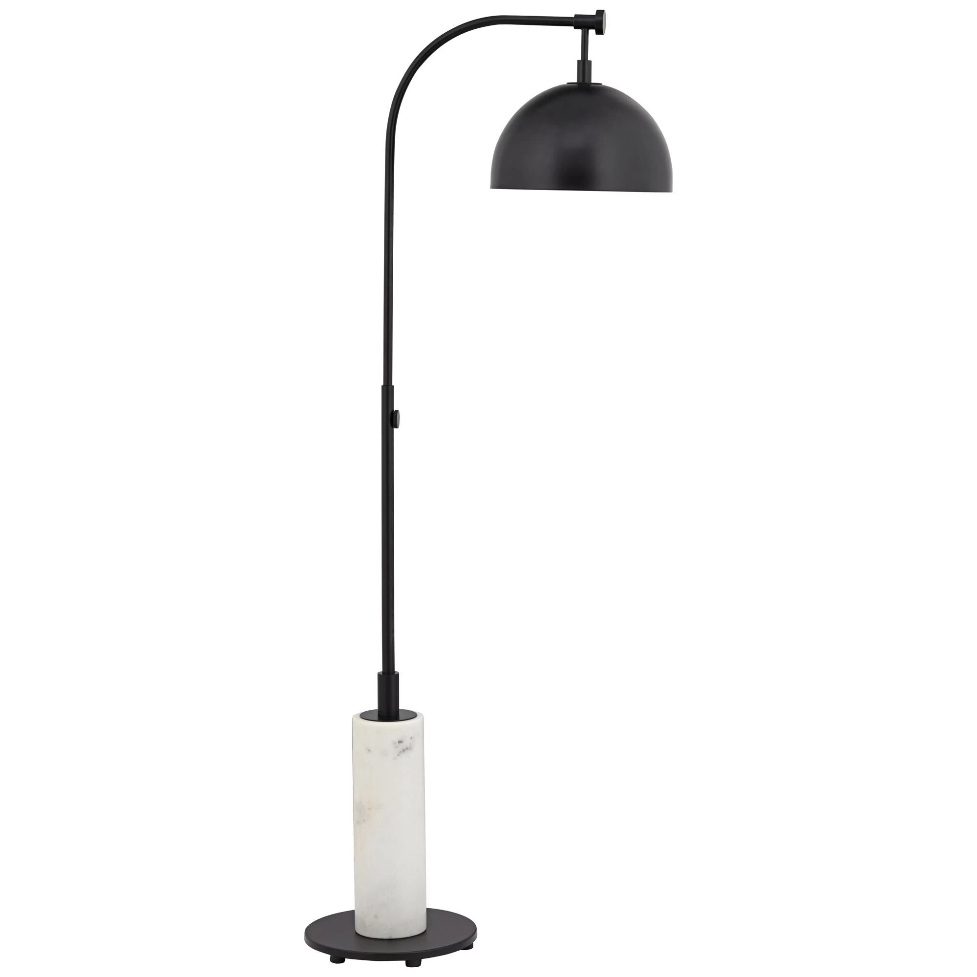 This inviting floor lamp brings a monochromatic flourish and artful desire to any space lacking modern light decor. A dim, bowl shade contains the classically hung light fixture, supported by a polished, black finish in both the shade and neck. The base performs double-duty with a stable black foundation and accenting column of marbled white for aesthetic excellence.