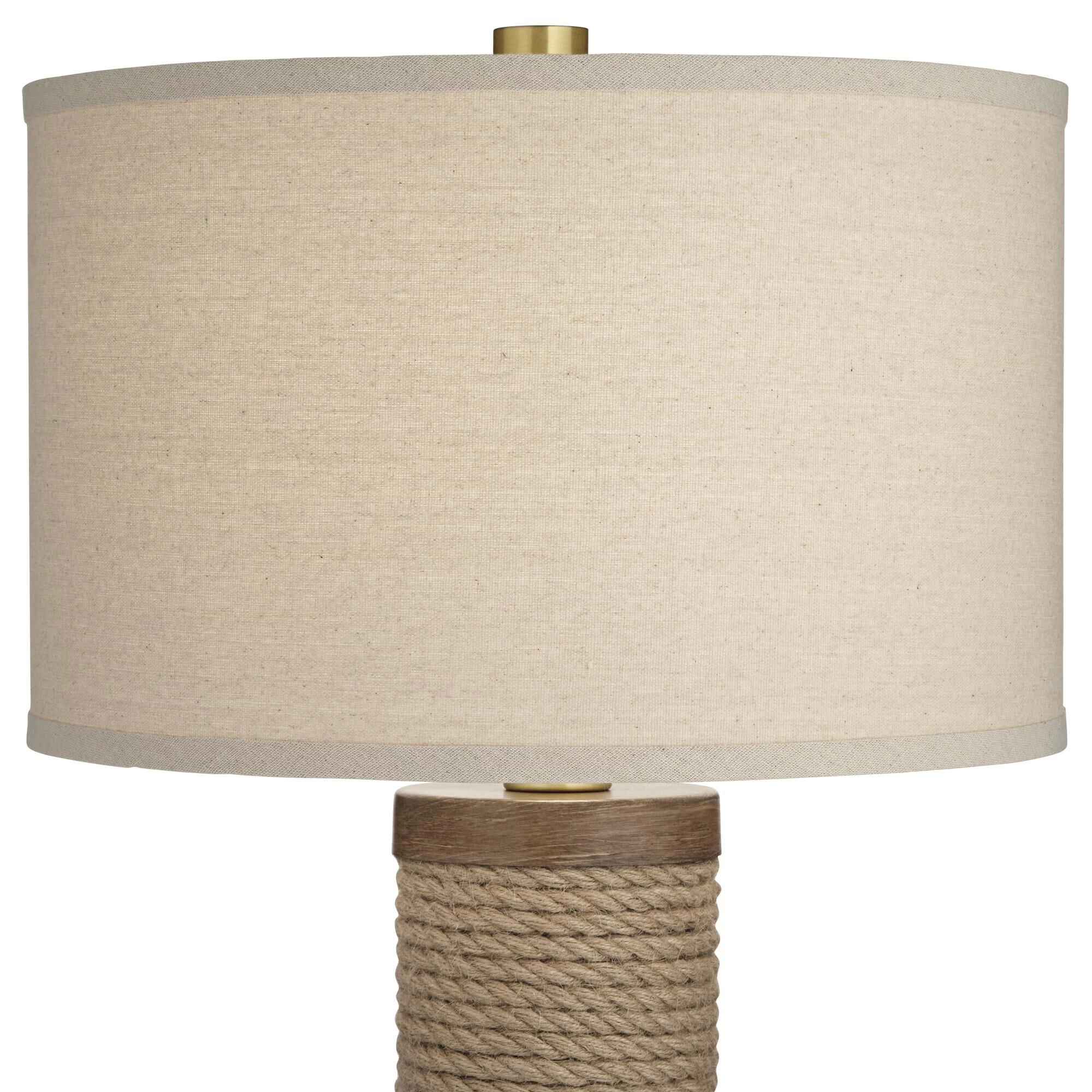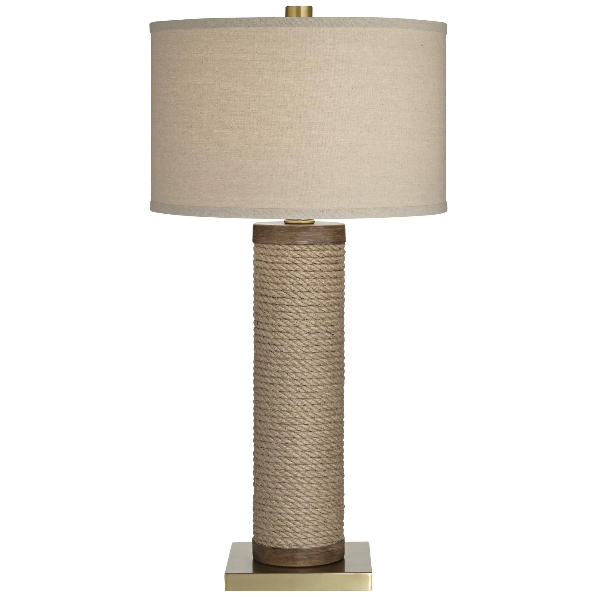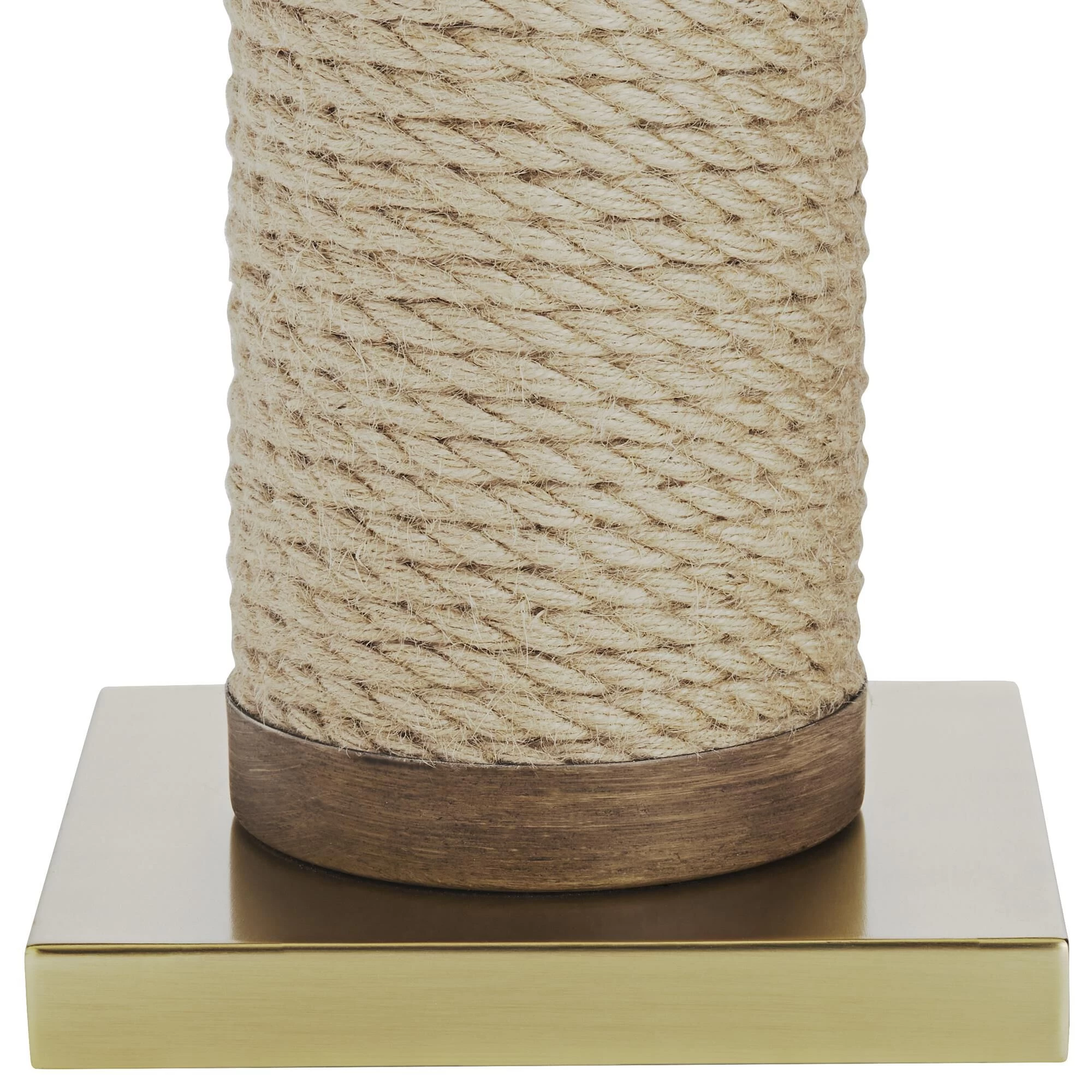 Bound in natural rope for an organic texture, this column table lamp offers an elegant coast-inspired aesthetic complete with all the nautical charms. Gleaming golden elements push the vessel-like touches, along with a softly glowing linen shade. A chic addition for contemporary oceanside resorts.