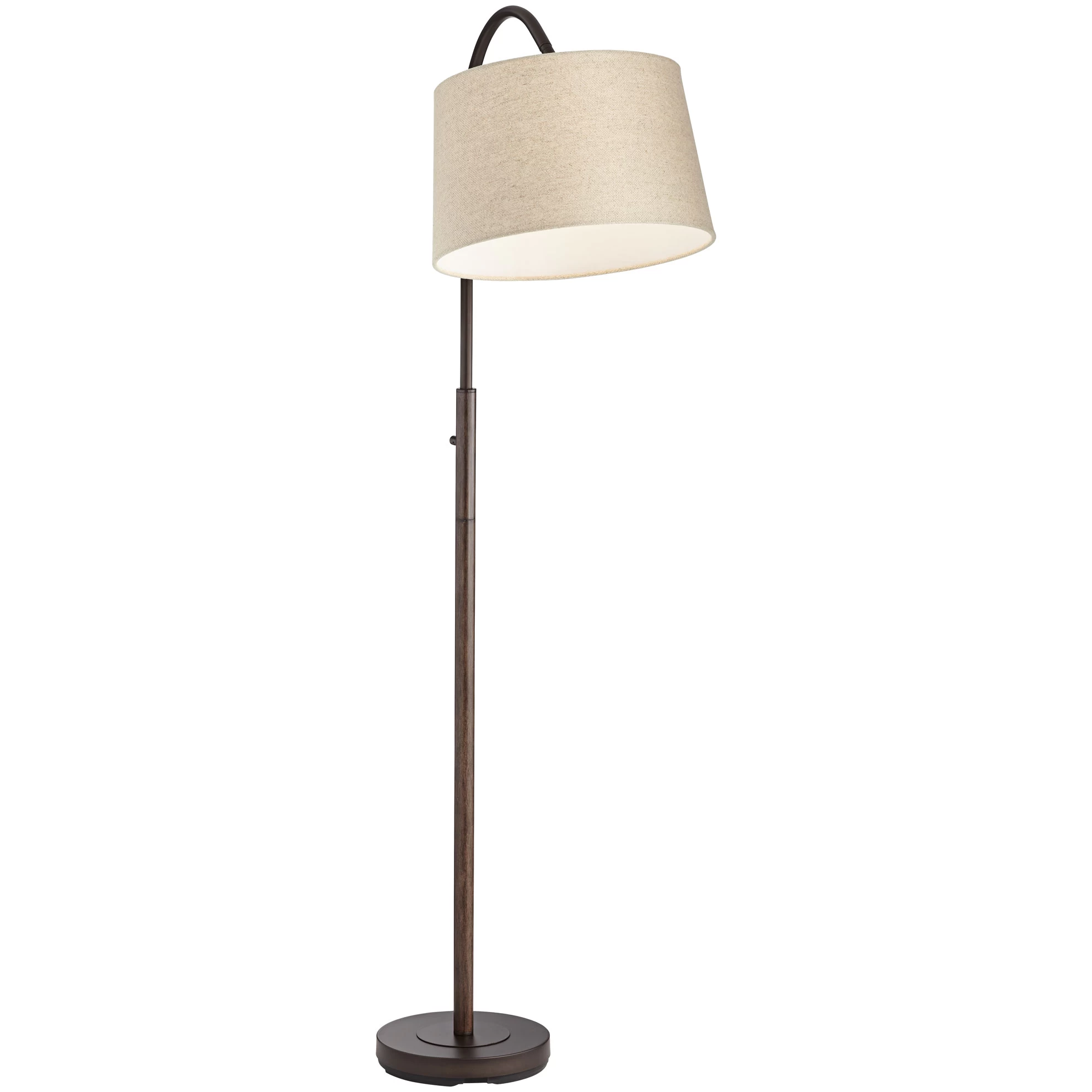 The Lindley Floor Lamp features a downbridge frame in a Bronze finish with an arched arm. The angle of the tapered burlap shade can be adjusted to direct light where it is needed, making Lindley an excellent choice for both task lighting or general illumination. An on/off rotary switch is installed on the pole.