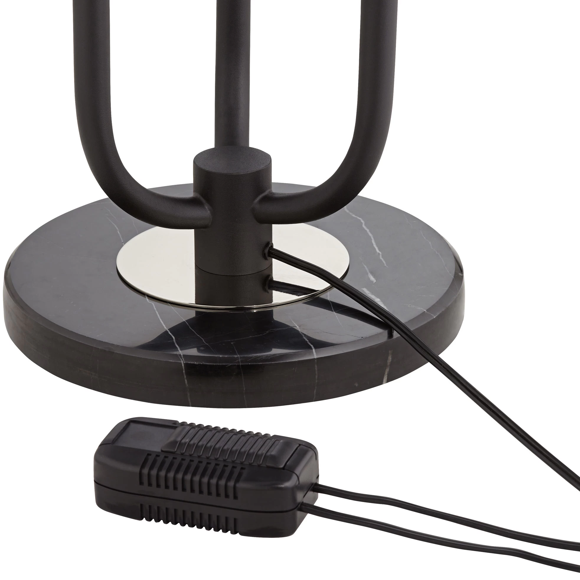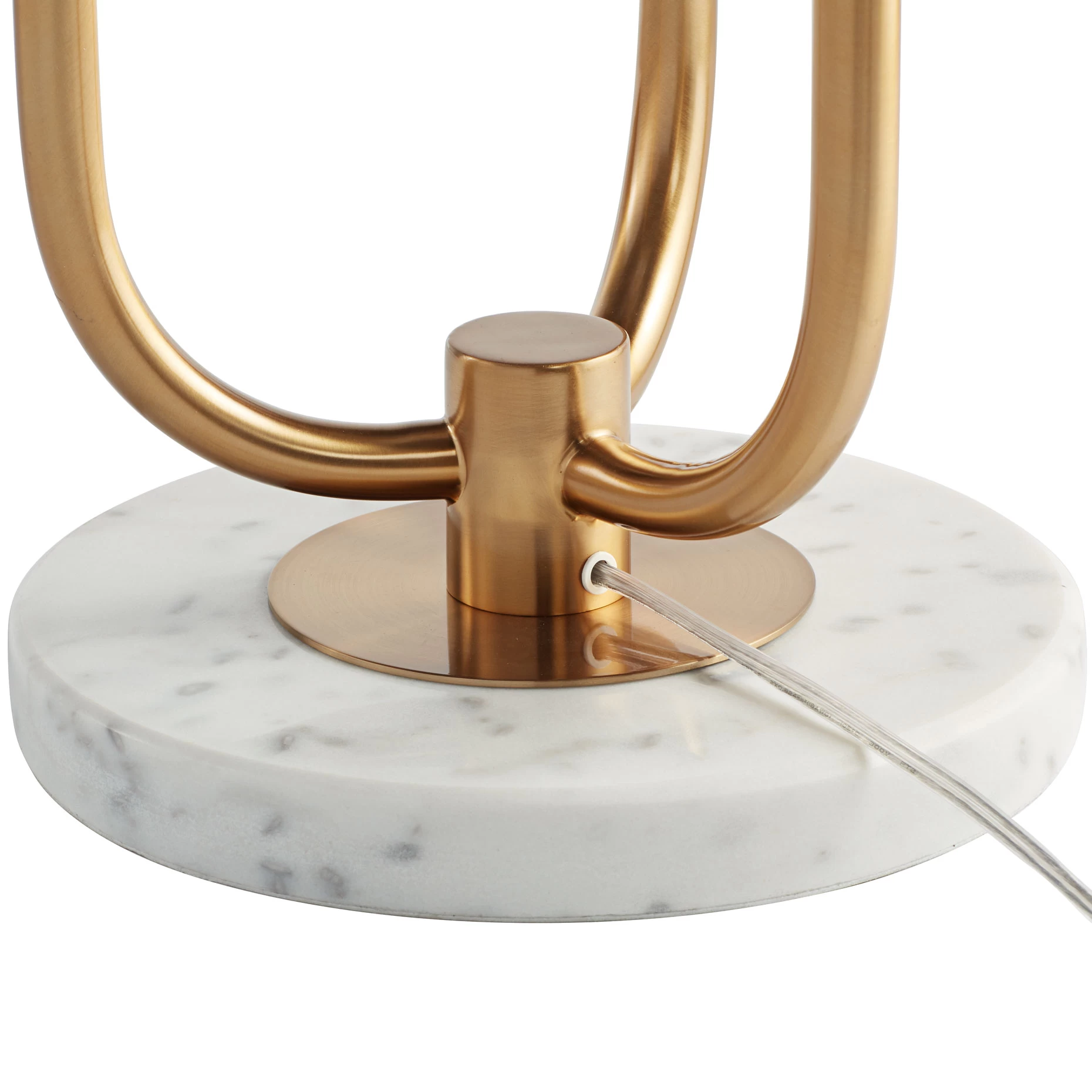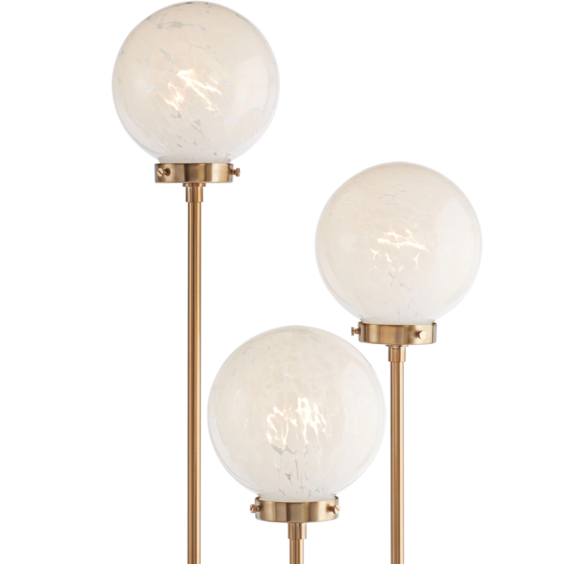 Topped with three glass globes, the Madison Park Floor Lamp glows with classic elegance. Three sleek curving stems of varying heights rise from a round marble base. Light up a mid-century inspired space with this artfully appealing piece. Includes dimmer switch on cord. Available in Black finish with black marble base or Gold finish with white marble base.