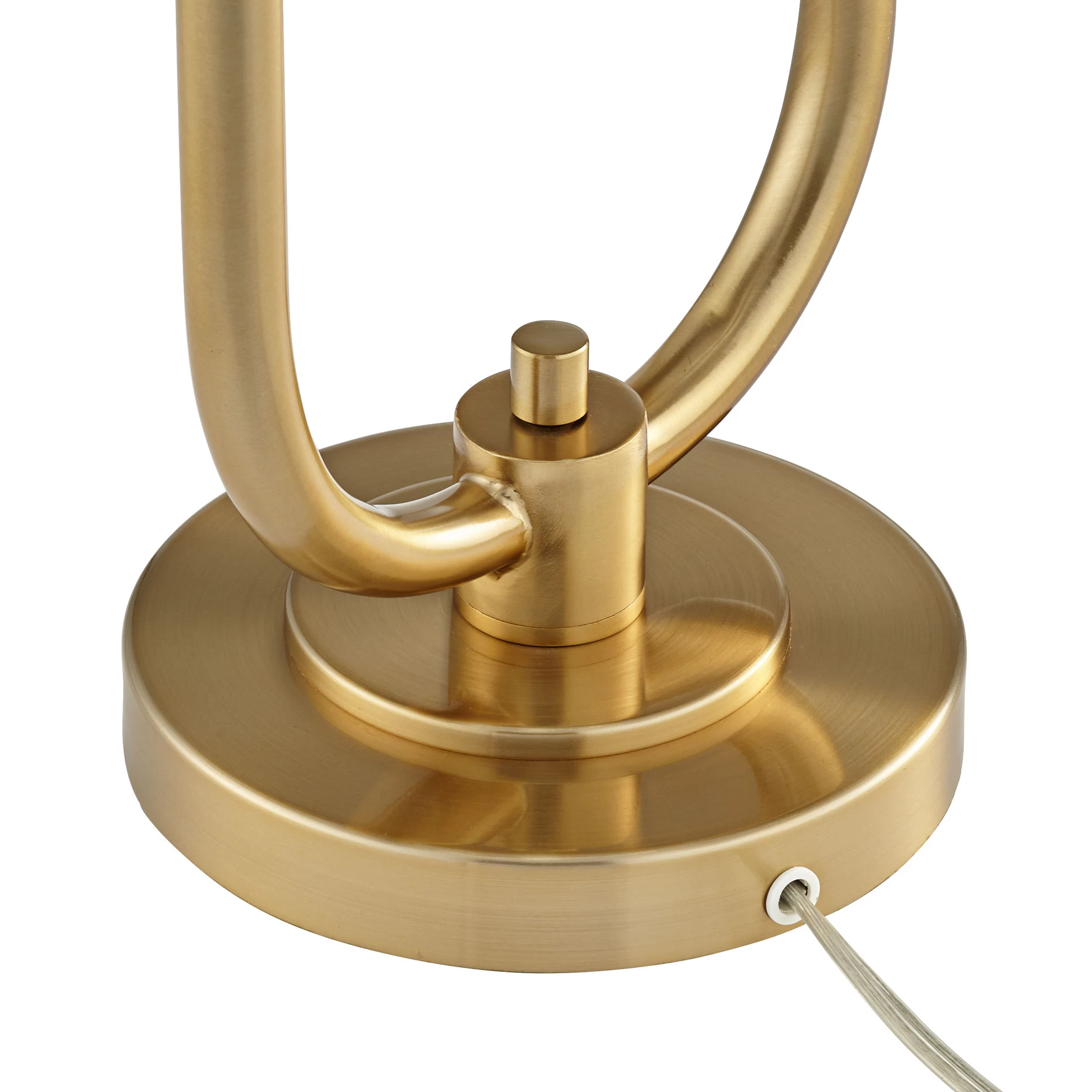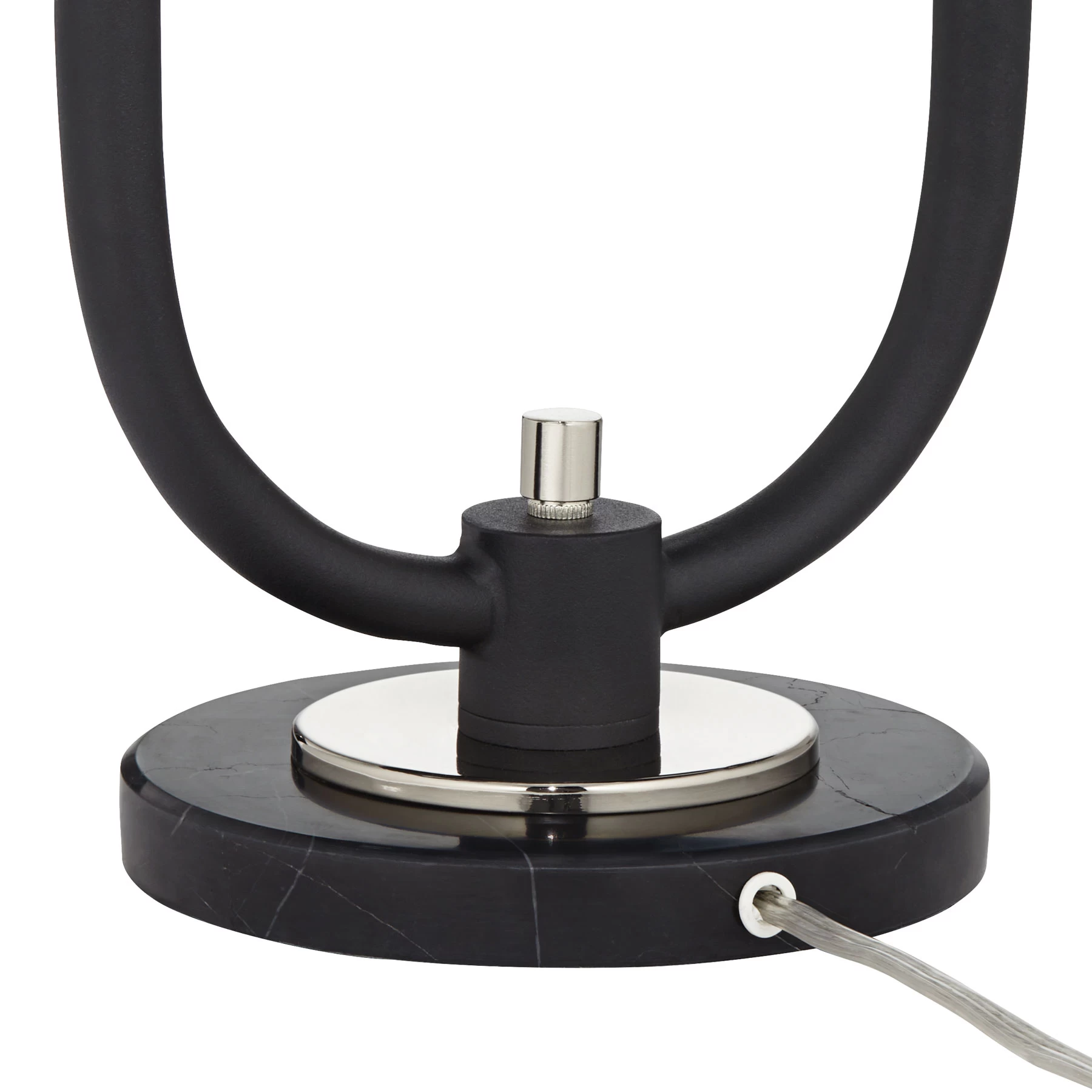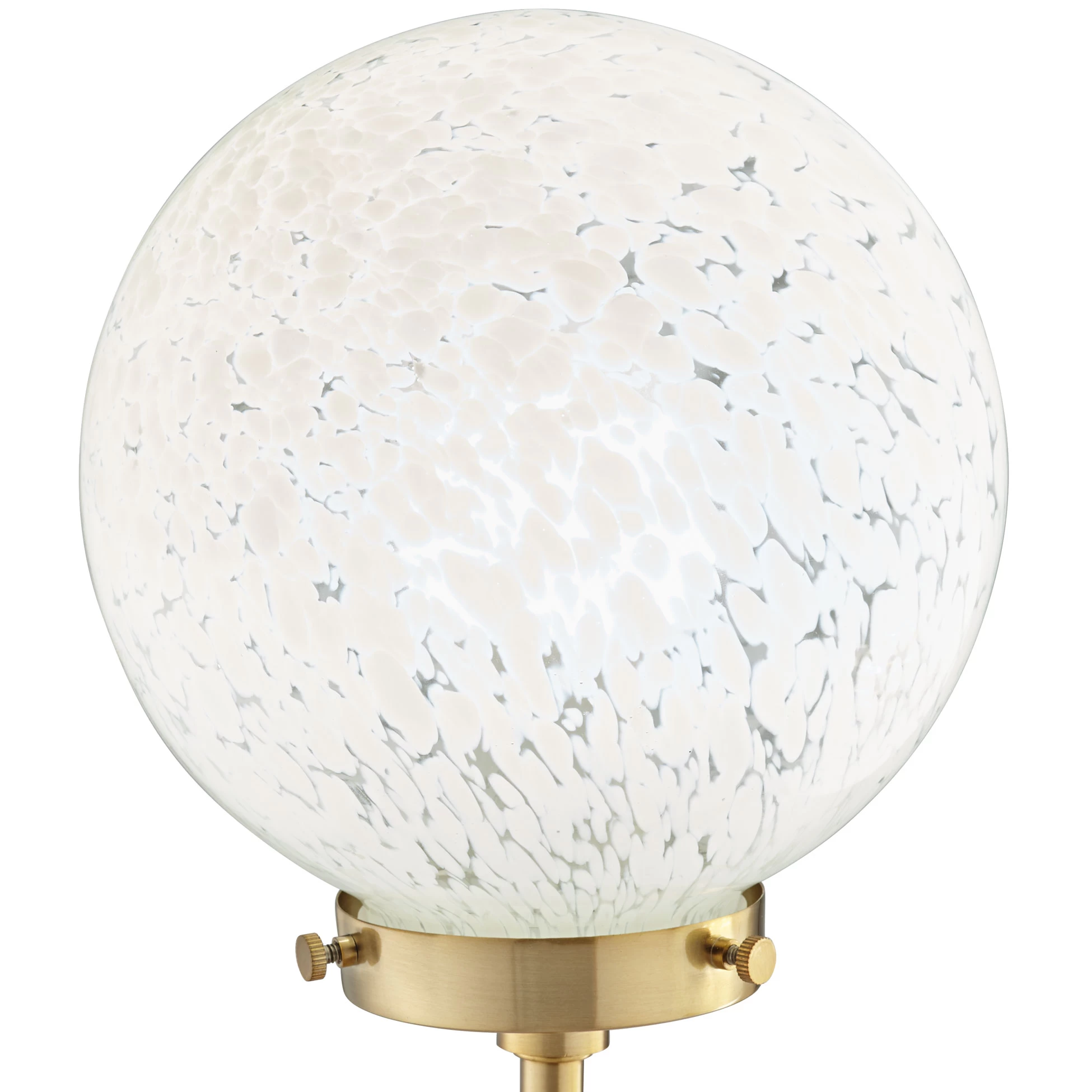 Topped with two glass globes, the Madison Park Table Lamp glows with classic elegance. Two sleek curving stems with offset heights rise from a round base. Light up a mid-century inspired space with this artfully appealing piece. On/off switch on base.