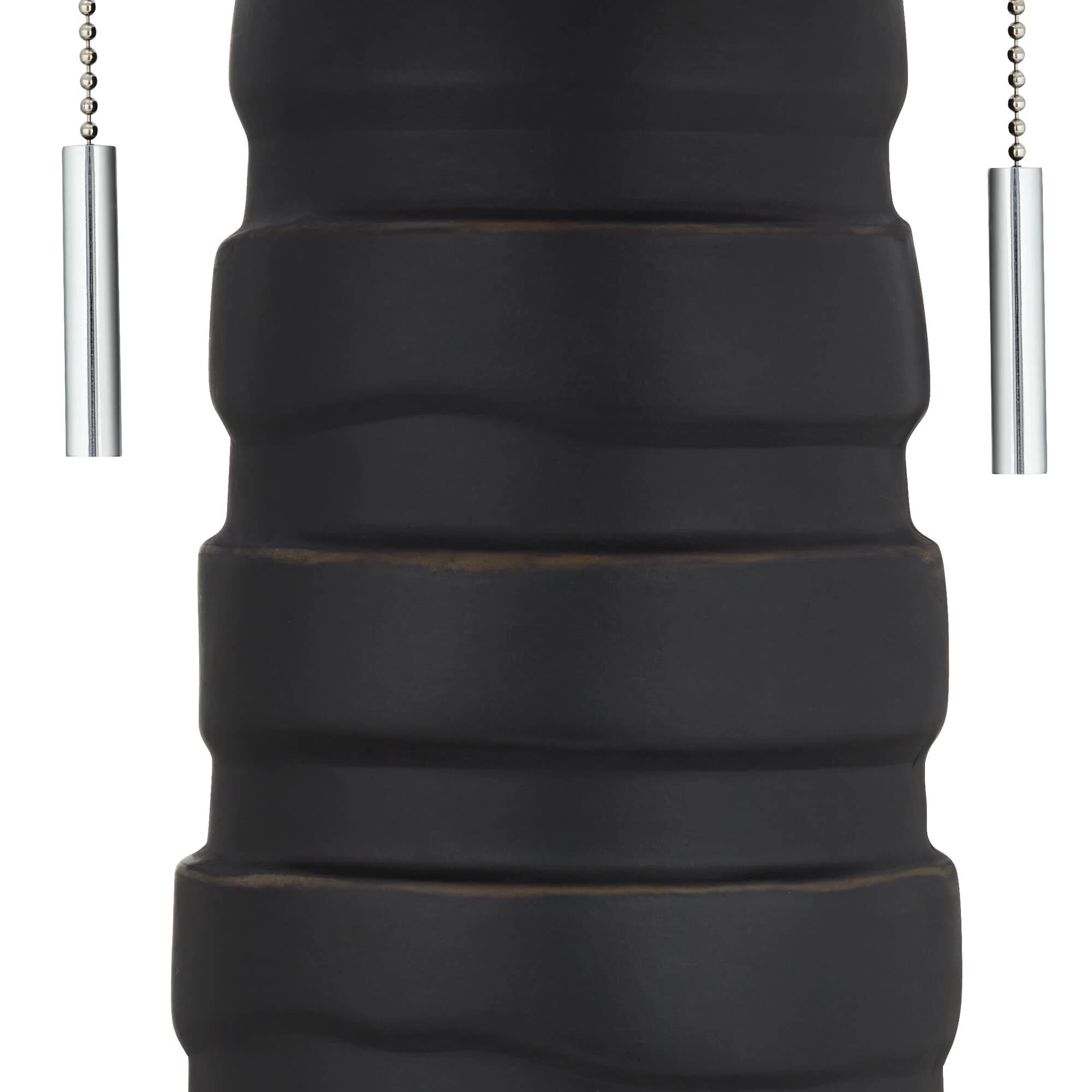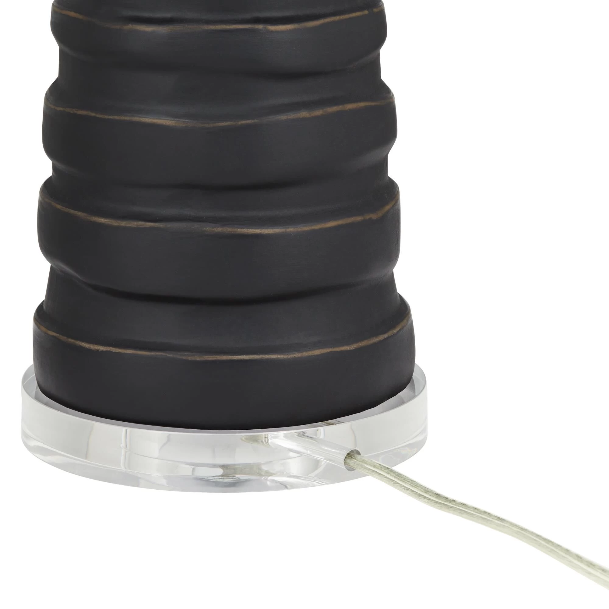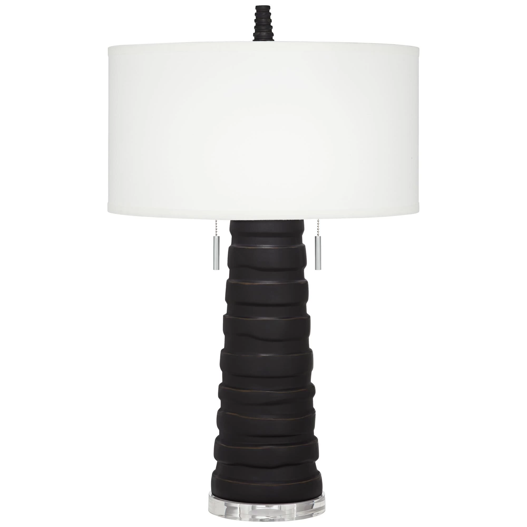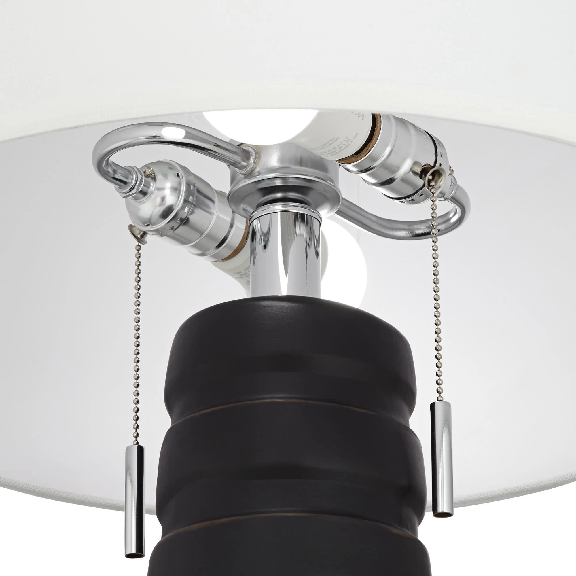 This Kathy Ireland lamp is sure to turn a few heads. The tapered white body of this table lamp stands out. The beautiful linen round shade complements the elegant look.