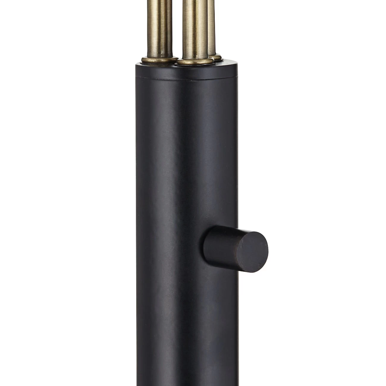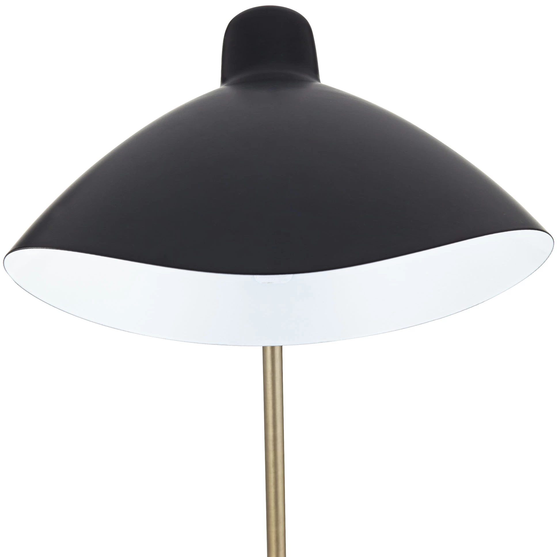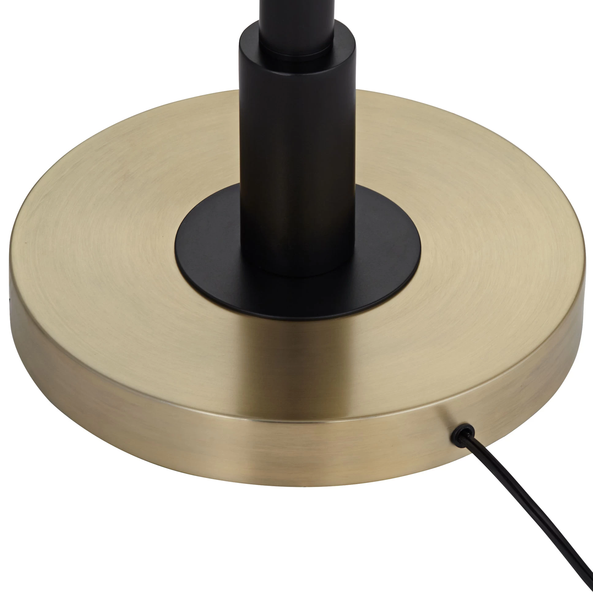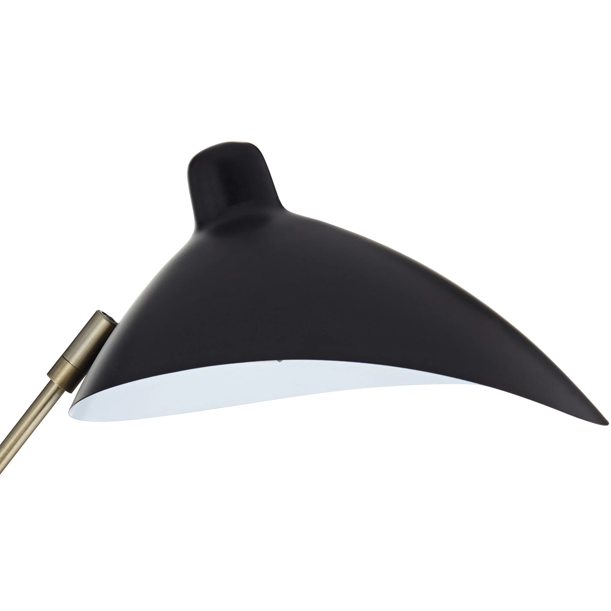 Add light to your preferred nook or reading area with the three-headed Navigator Floor Lamp. Curved shades top angular arms for a wide-reaching, branching look. Brass accents contrast with the black metal finish for a luxurious accent. On/off rotary switch located on pole.