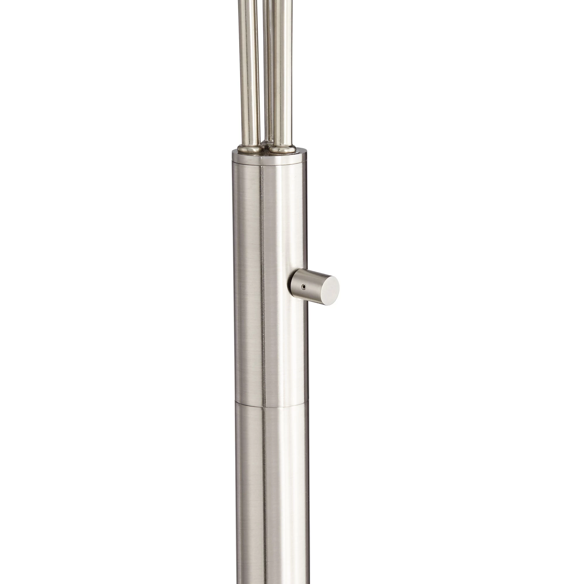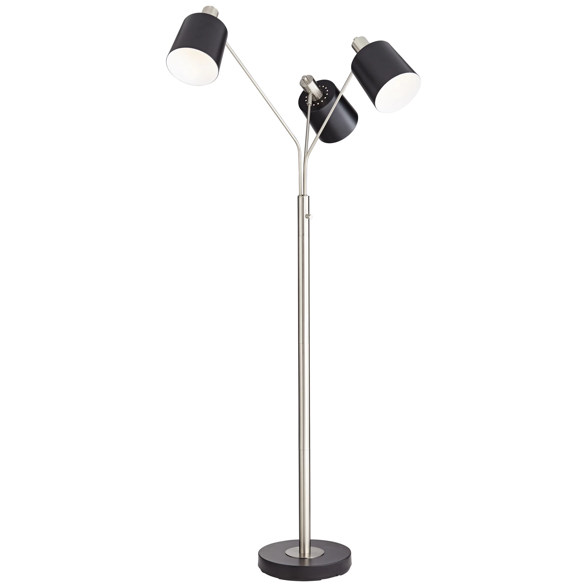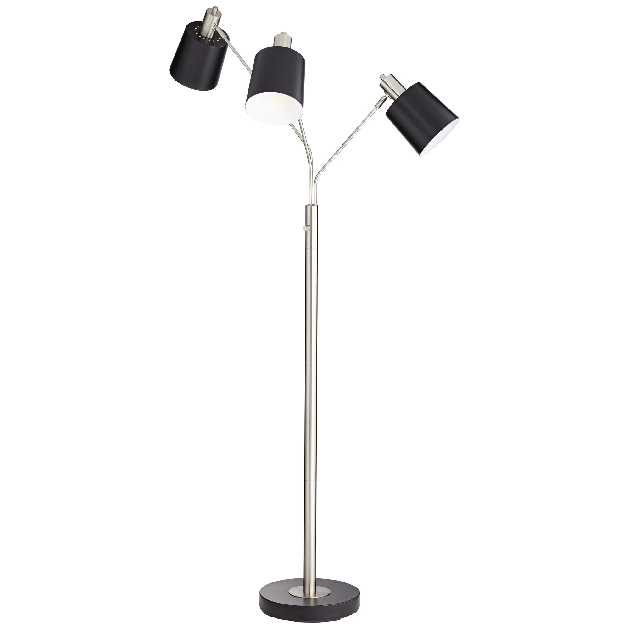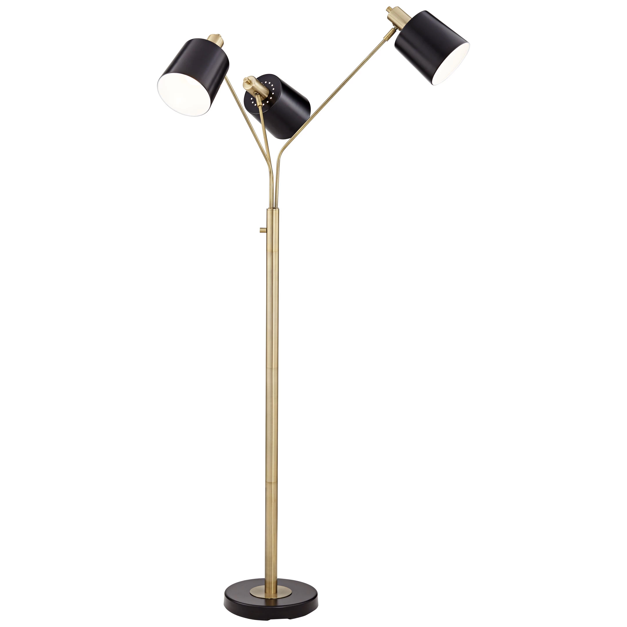 The New York Studio Floor Lamp features a round base and three curved arms each topped with a spotlight. The angle of the lights can be adjusted as desired and provide a contemporary look. An on/off rotary switch is installed on the stem.