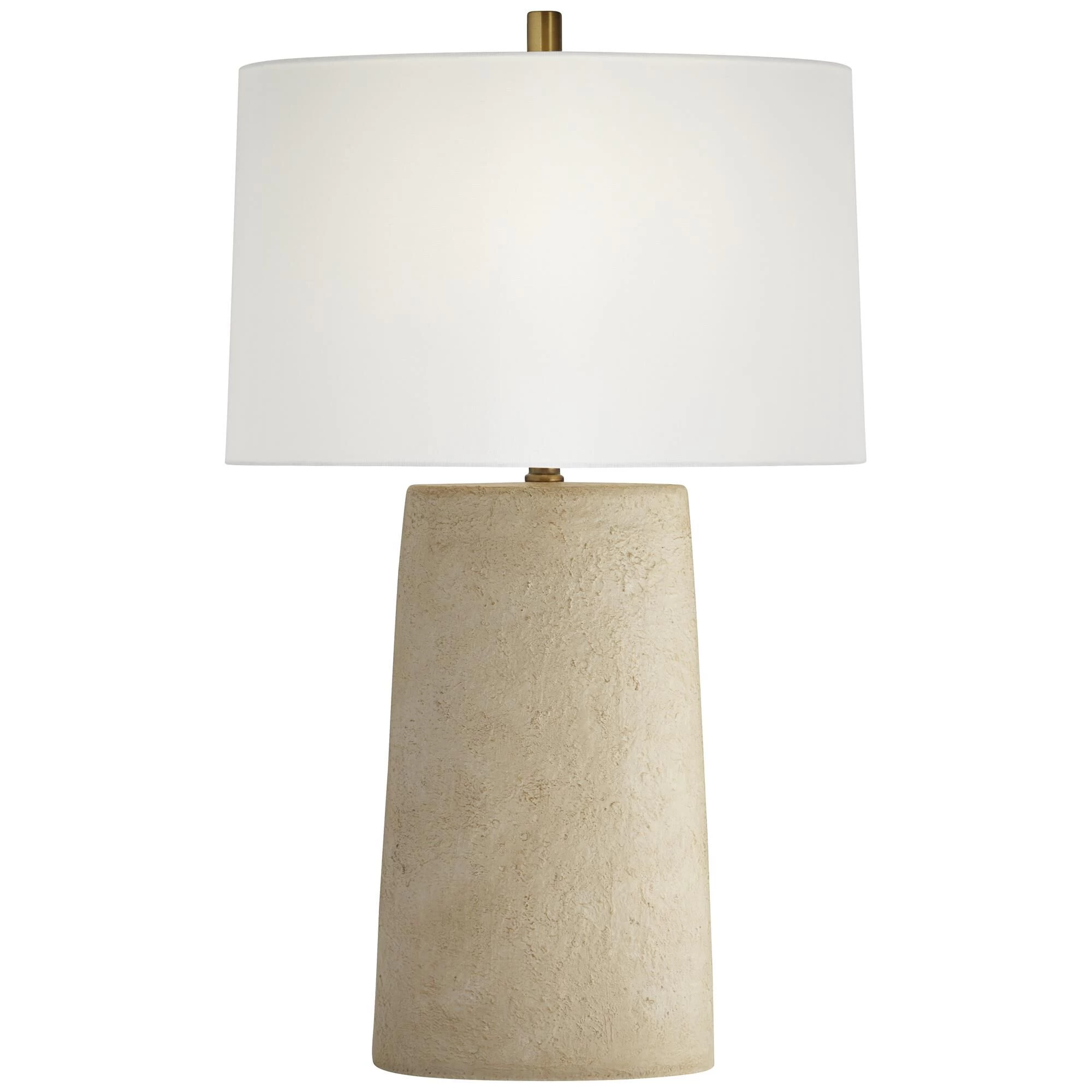 The majestic pillar base of this light brown table lamp lends a raw nature to interiors. Designed with a light brown faux rock texture across its alluring oval profile, this table lamp offers an impressive composition and grounds a space wonderfully. A charming rustic-leaning addition for global-inspired spaces.