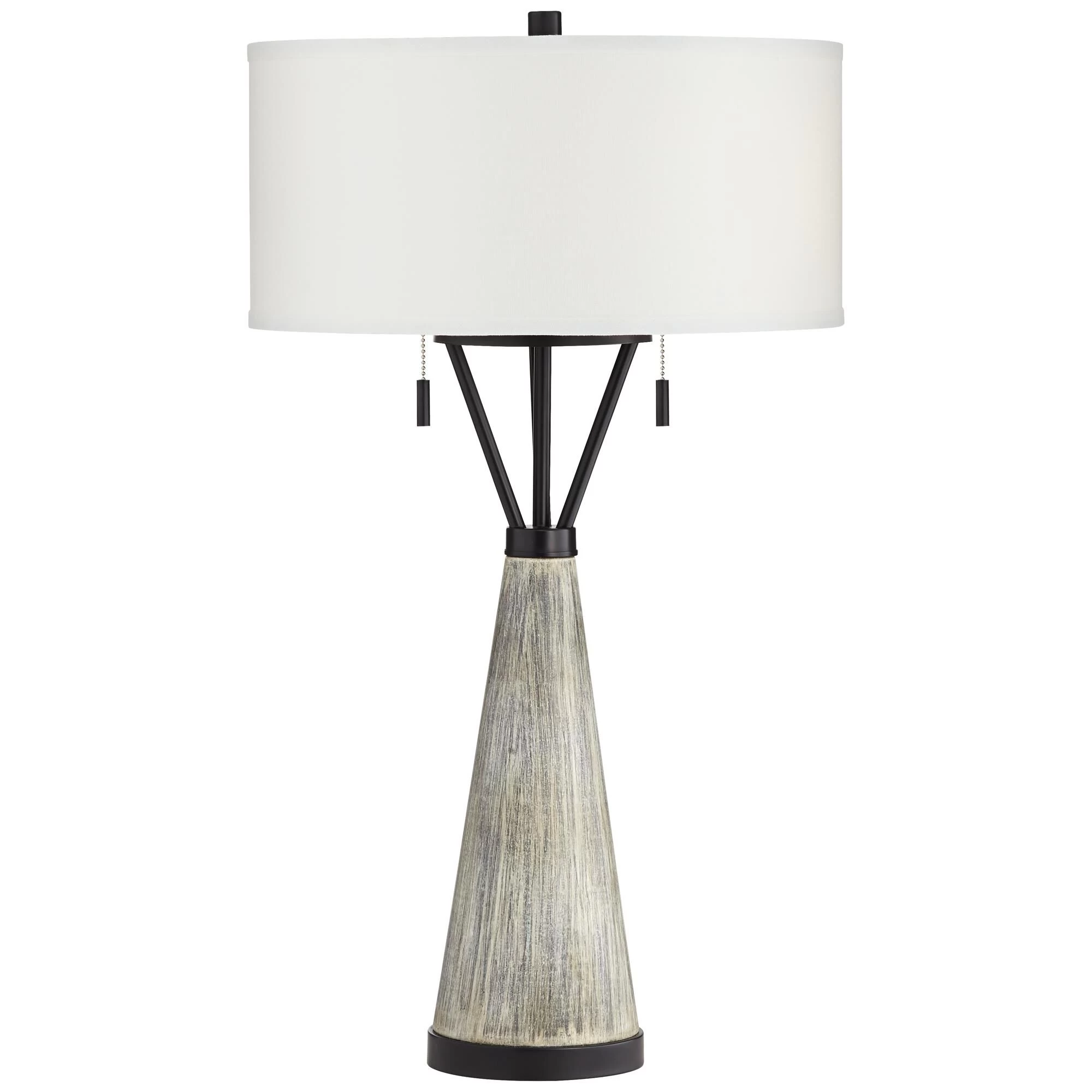 Casual goes rustic in the design of a chic lamp perfect for an easy, carefree living space. A gray wash finish offers versatile and stylish vibes in this pull chain table lamp. Farmhouse flavor adds a hint of industrial charm to a lamp with dark finish metal base and accents.