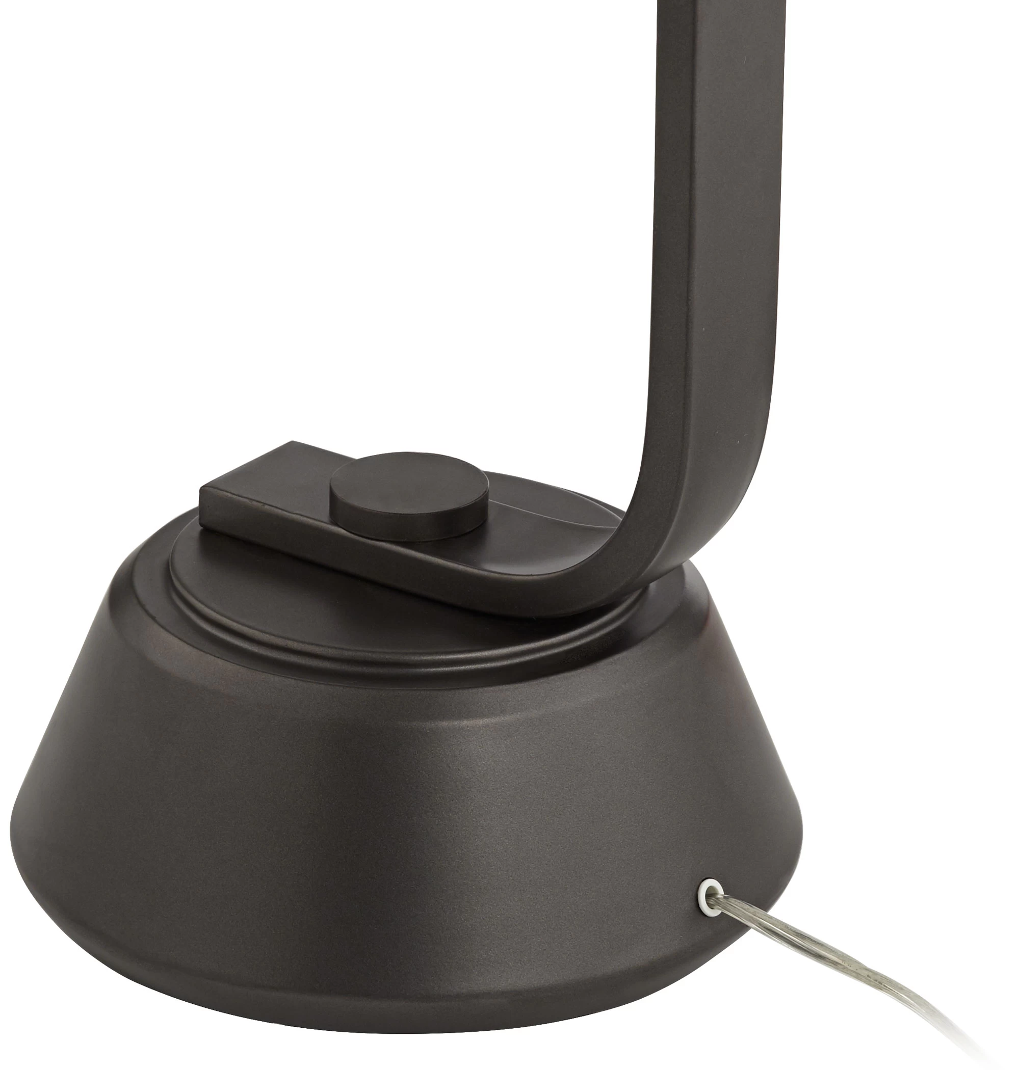 The Othello Floor Lamp offers a functional spotlight and tray table without compromising on style. A slim frame with a gun metal finish supports a linen drum shade that houses the main lamp. A spotlight (bulb included) hangs beneath the shade to provide additional light for reading. Othello’s transitional design feels at home in both industrial or contemporary spaces. An on/off rotary switch is located on the socket.