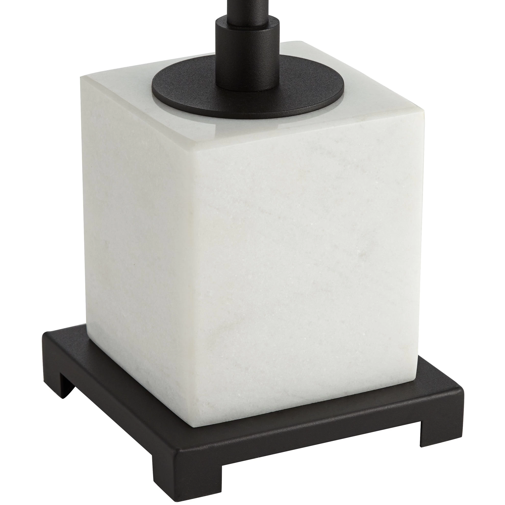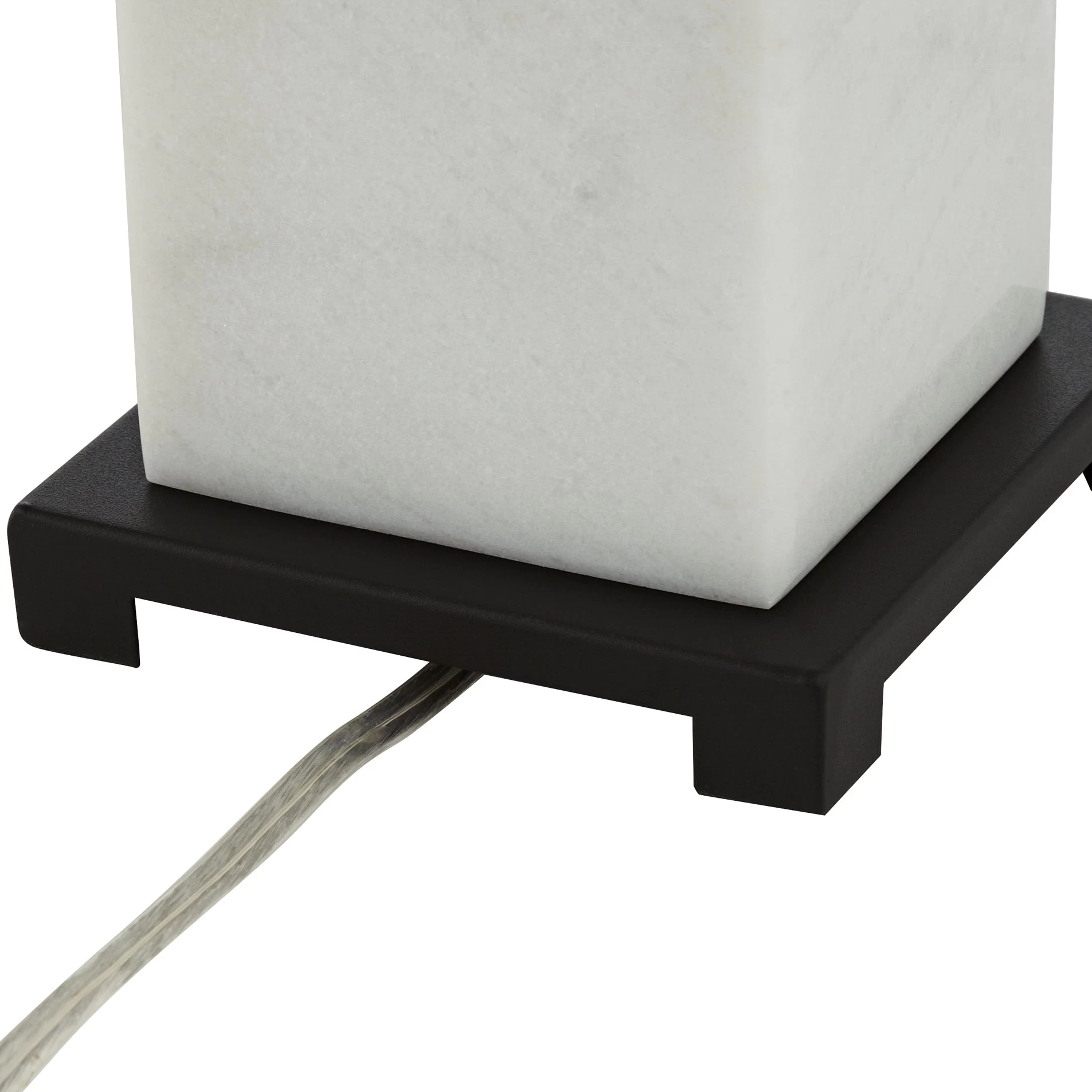 Two alabaster shades affixed to a sleek black frame make the Remi Table Lamp an elegant addition to a contemporary interior. A white marble block base contrasts with the black finish and adds a luxurious accent. On/off switch located on cord.
