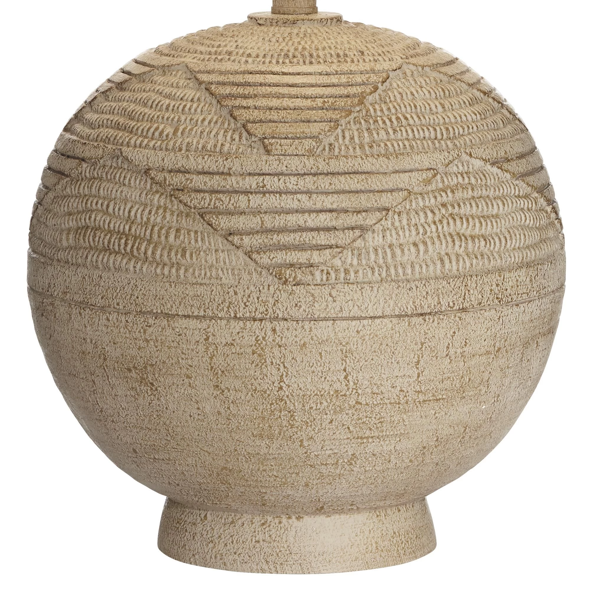 Layered triangles create a compelling sense of texture and earthy ambiance for this brown table lamp. A natural color palette complements the orb body of the lamp and the foot that provides stability. On top, a drum shade and matching finial offer a clean, stylish look and feel.