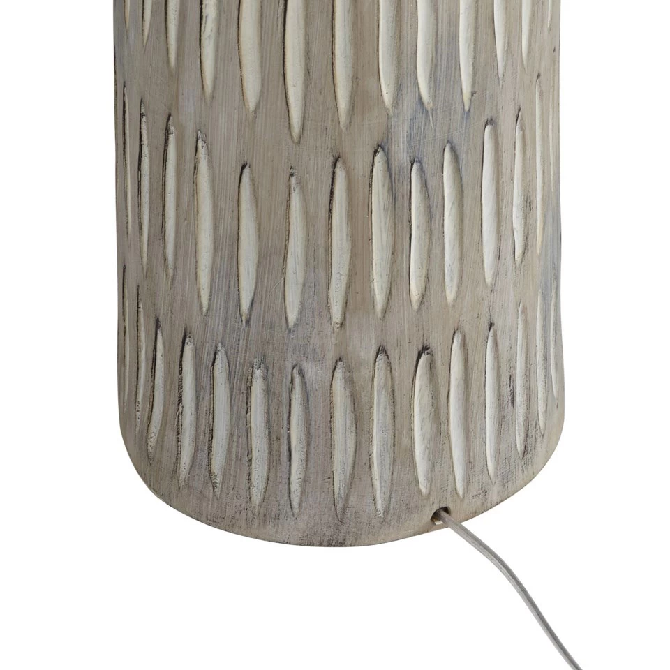 The Stonewall Floor Lamp features a hand carved resin base to offer a touch of intriguing texture. A natural powder coat finish mimics the look of stone for an earthy accent, and a tall cylinder shade gives the piece a sophisticated appearance. Switch located on cord.