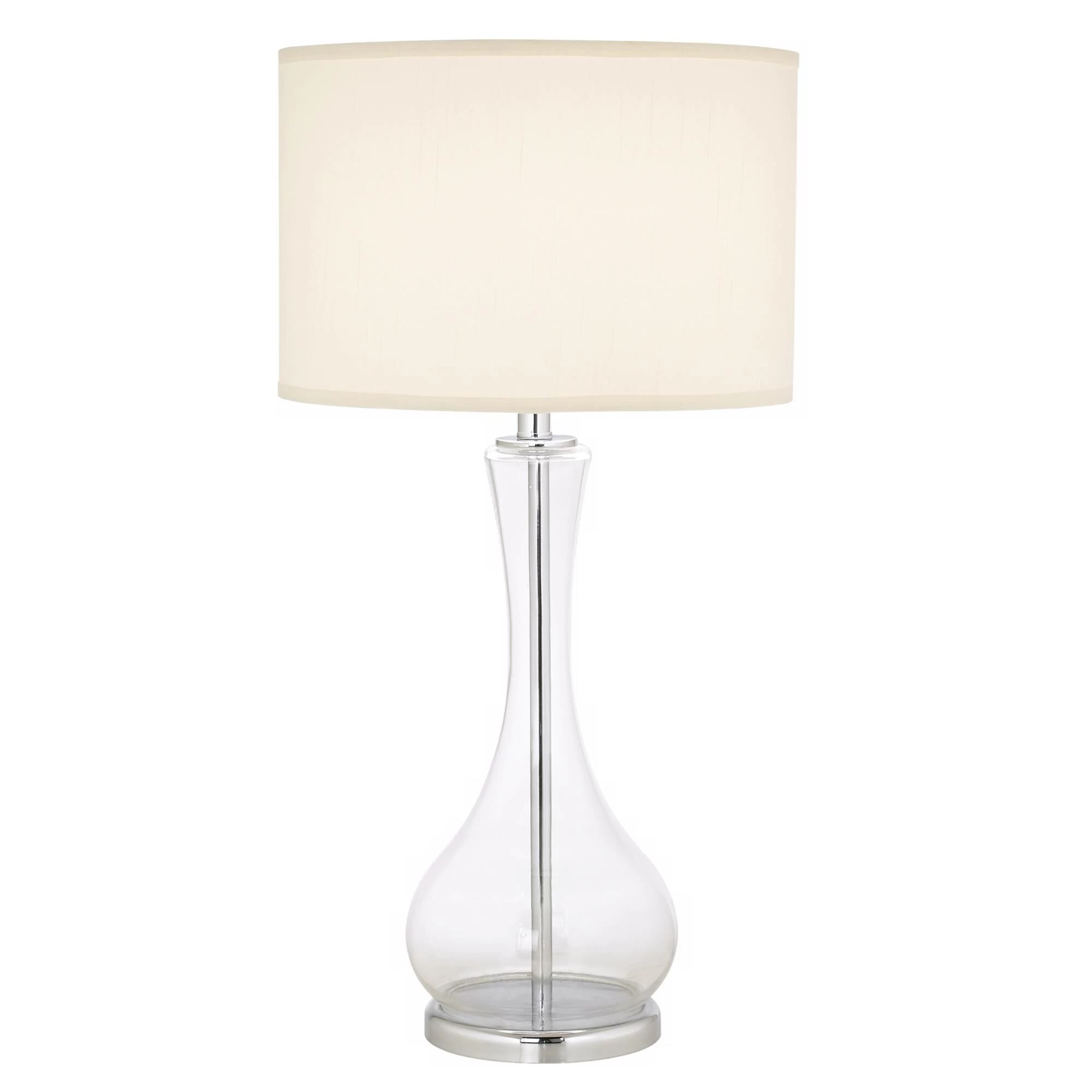 A shapely silhouette and clear martini glass finish create eye-catching appeal for this 007 table lamp with a linen drum shade.