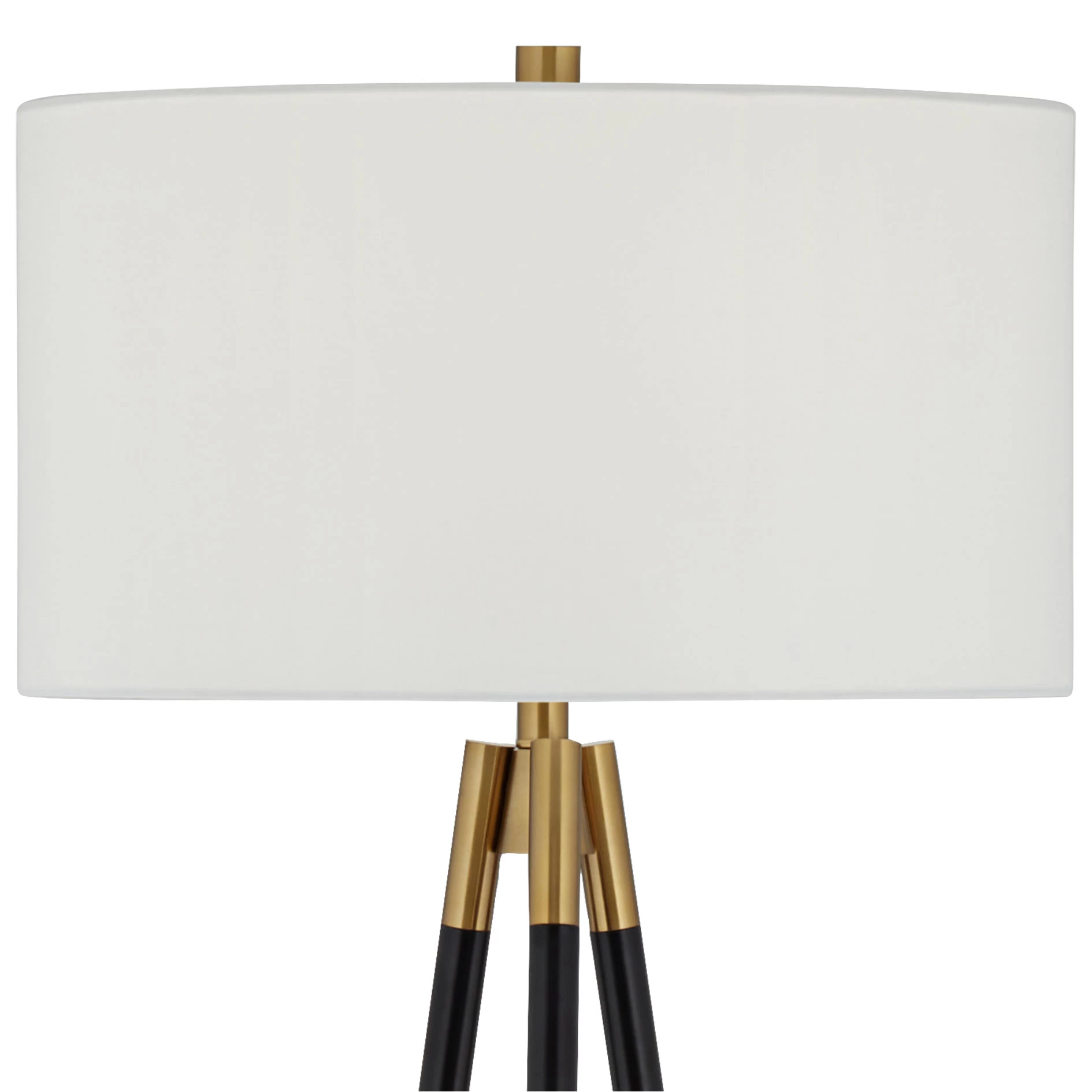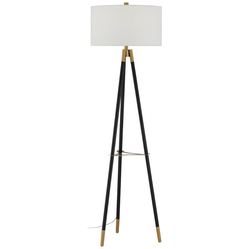 Add a new dimension to your space with the Torana Floor Lamp. A black wooden tripod base with polished brass accents give Torana a mid-century modern vibe, and a white linen drum shade adds a tasteful finishing touch. On/off switch located on socket.