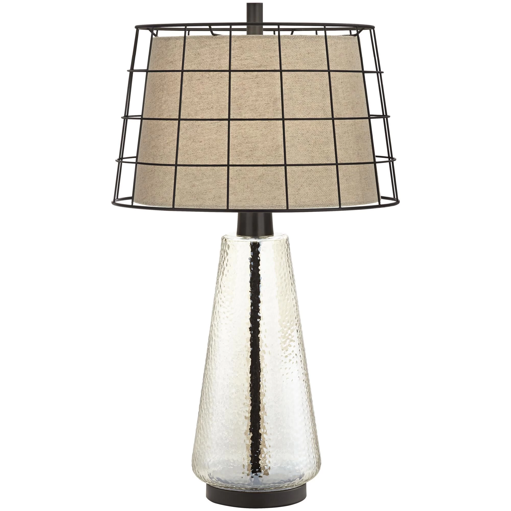 Old and new meet in the middle for the perfect balance with this seeded glass table lamp. The burlap shade and outer cage give this piece a modern aesthetic on a vintage style frame. The seeded glass adds a distinct touch and the double layer shade adds more dimension.
