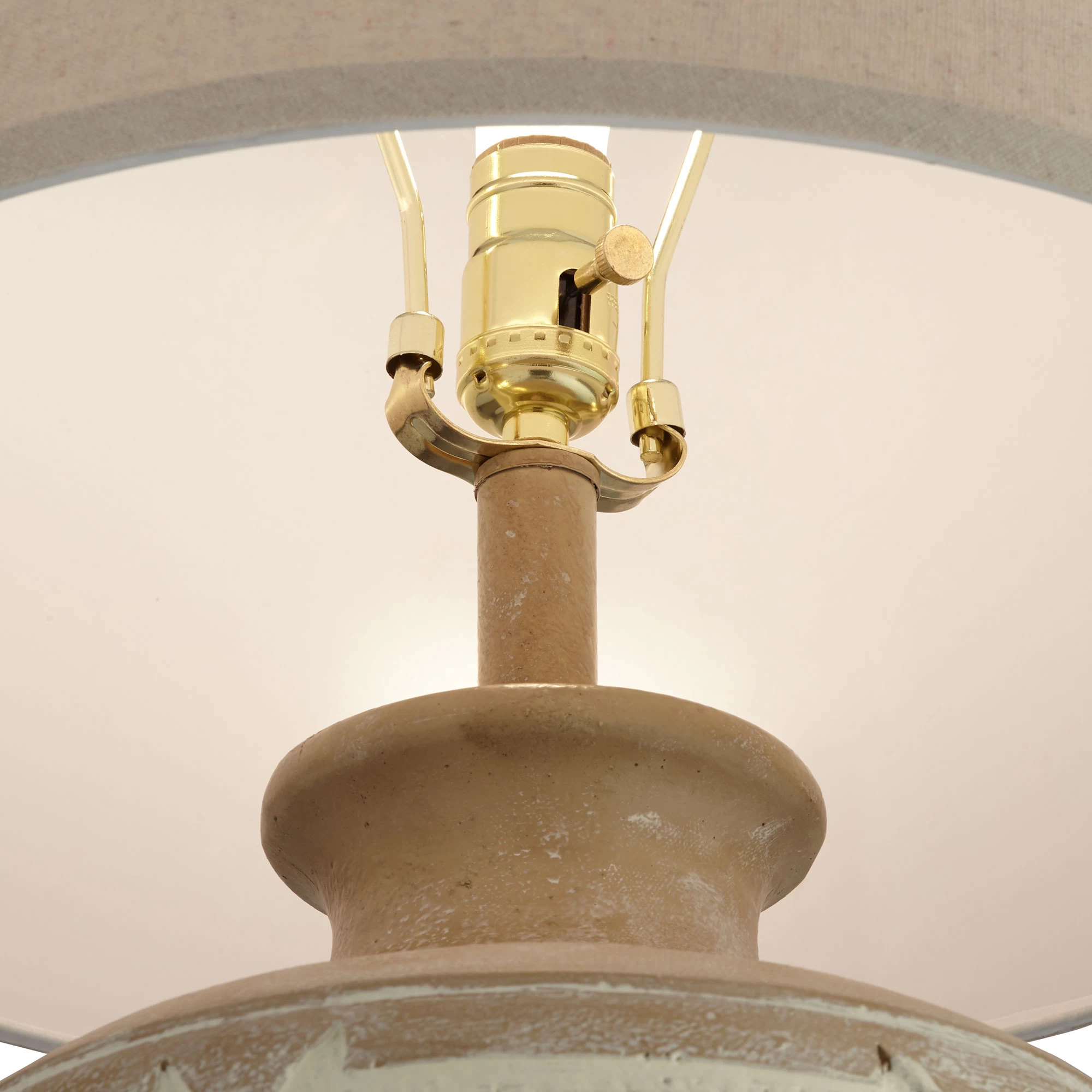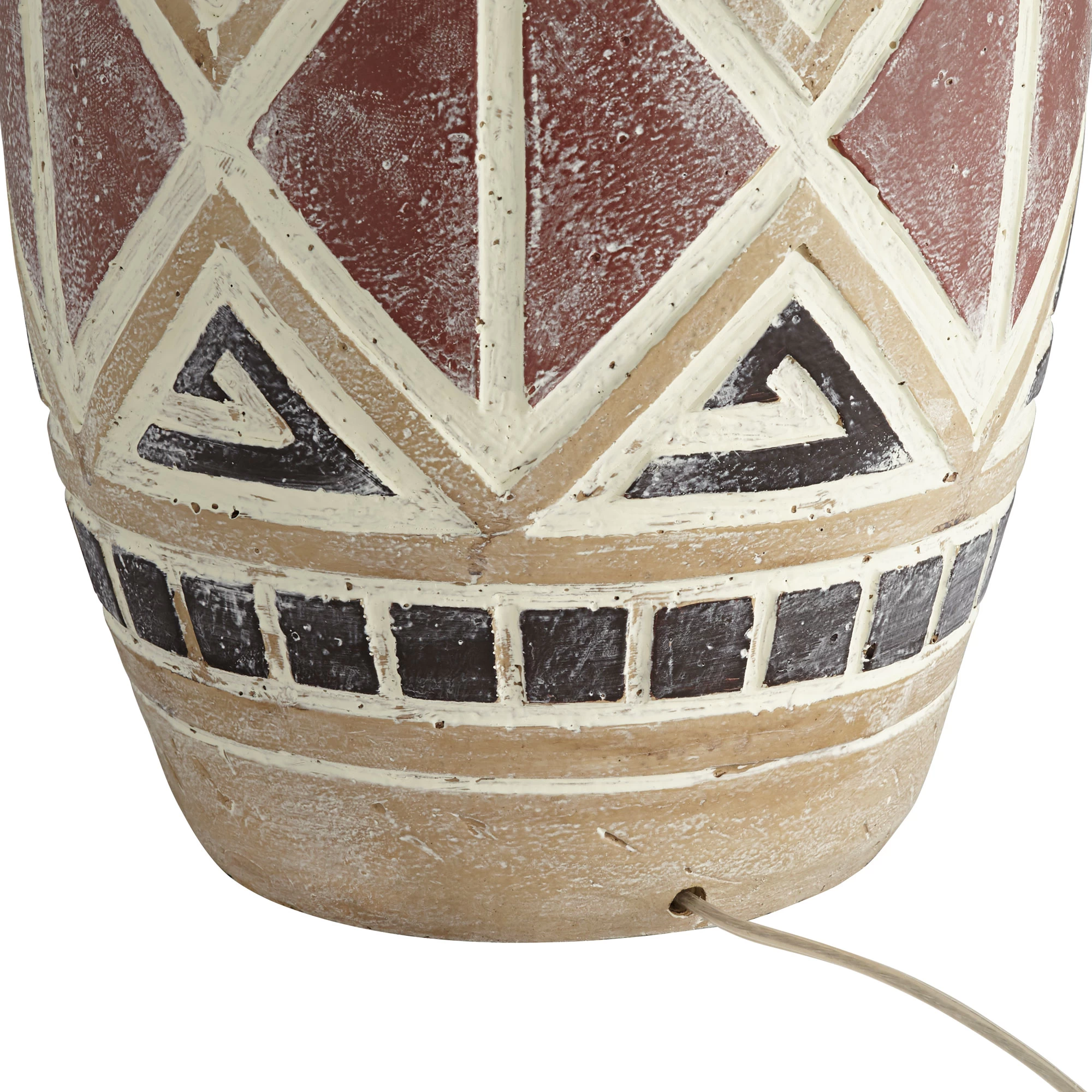 The Utica Table Lamp features a vase-shaped resin body encircled by a Southwestern inspired pattern. An oatmeal linen shade complements the earthy color palette that is sure to add a warm, inviting element to your decor. On/off rotary switch on socket.