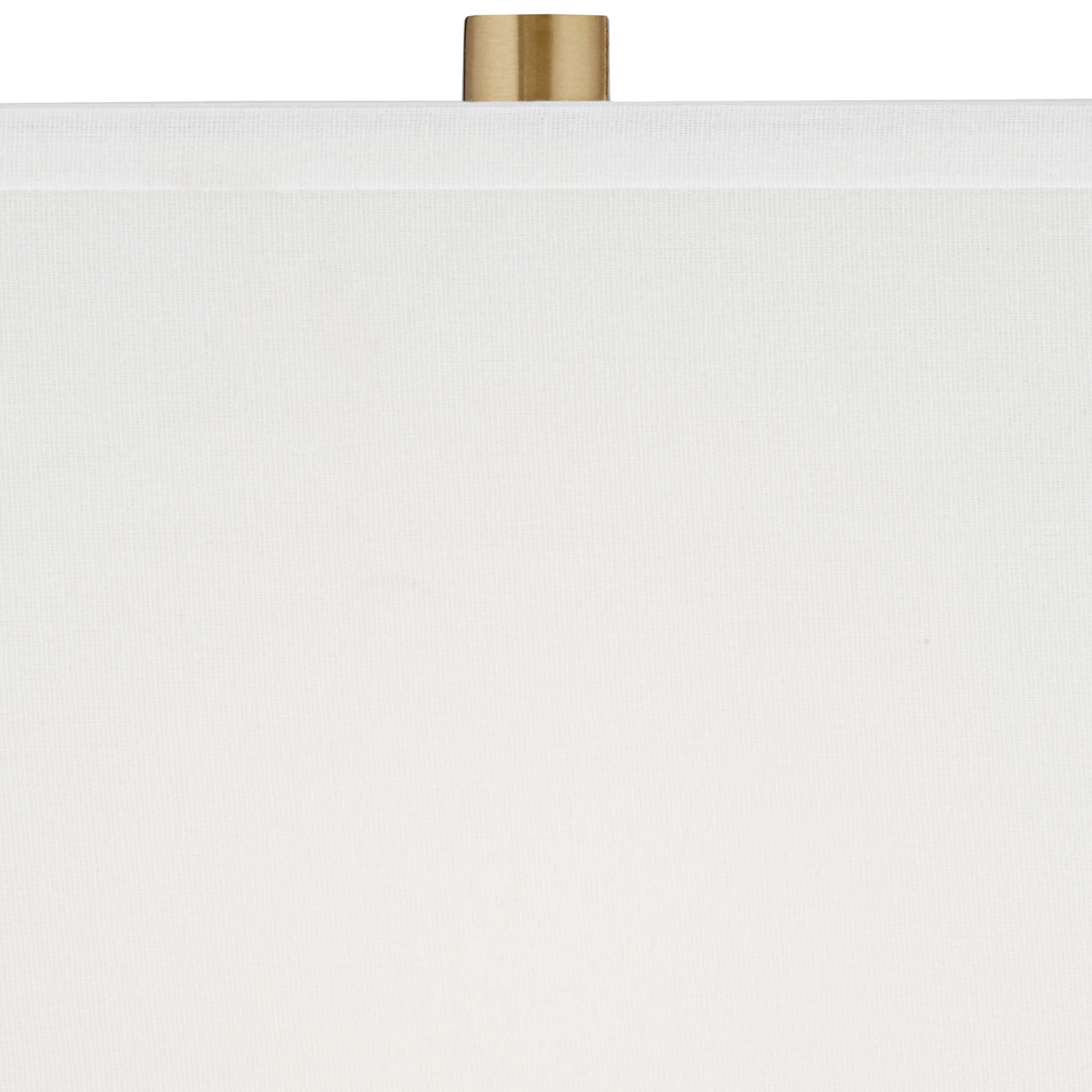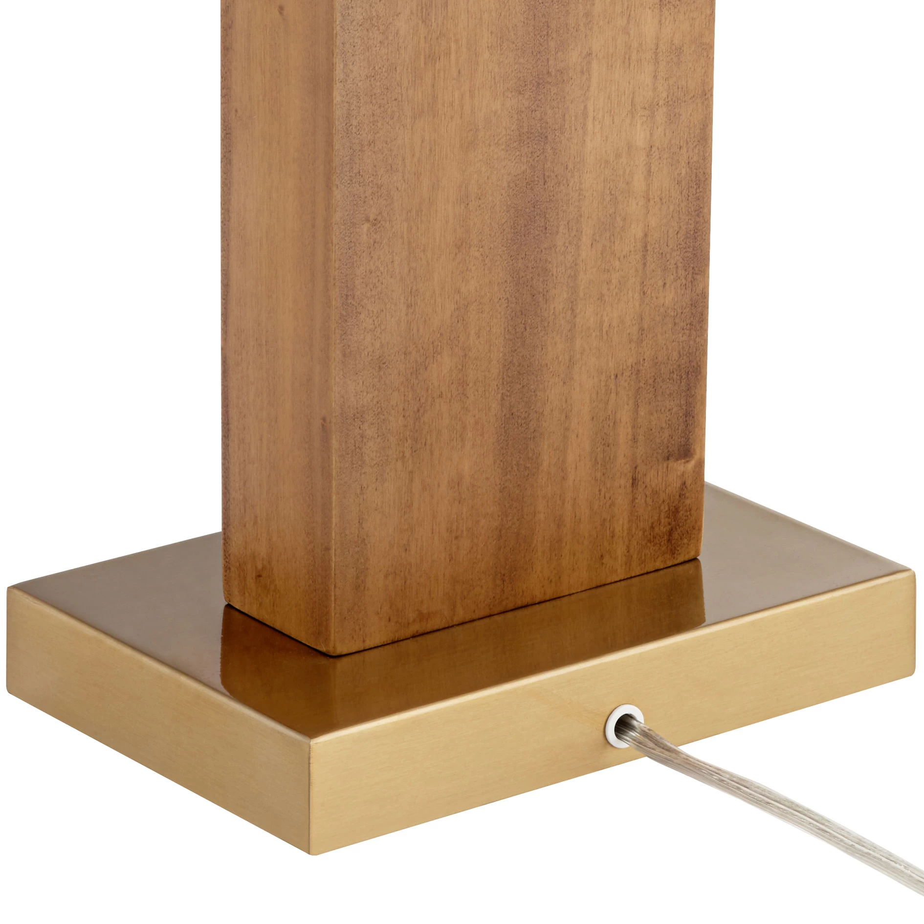 The Walnut Grove Table Lamp pays homage to mid-century design with a slim rectangular silhouette in a Walnut finish. Brass finished accents and a white rectangular shade lend a sophisticated touch. On/off rotary switch located on socket.